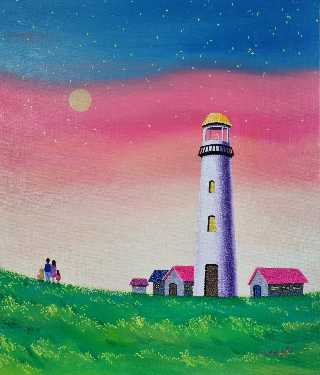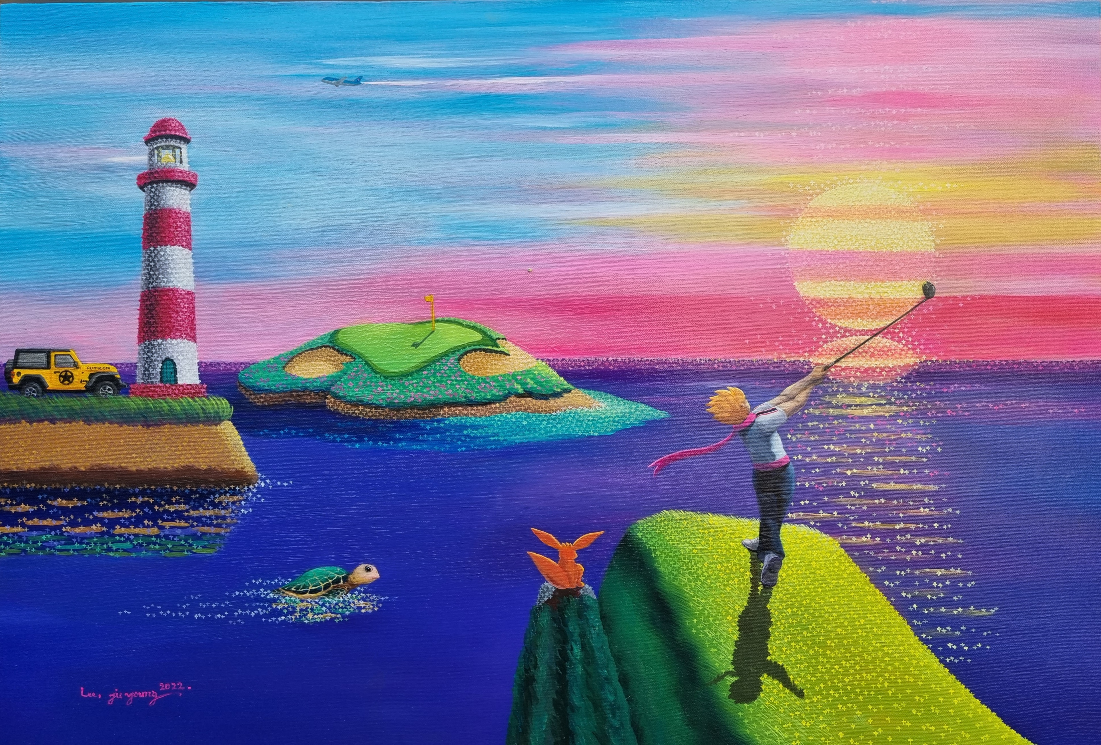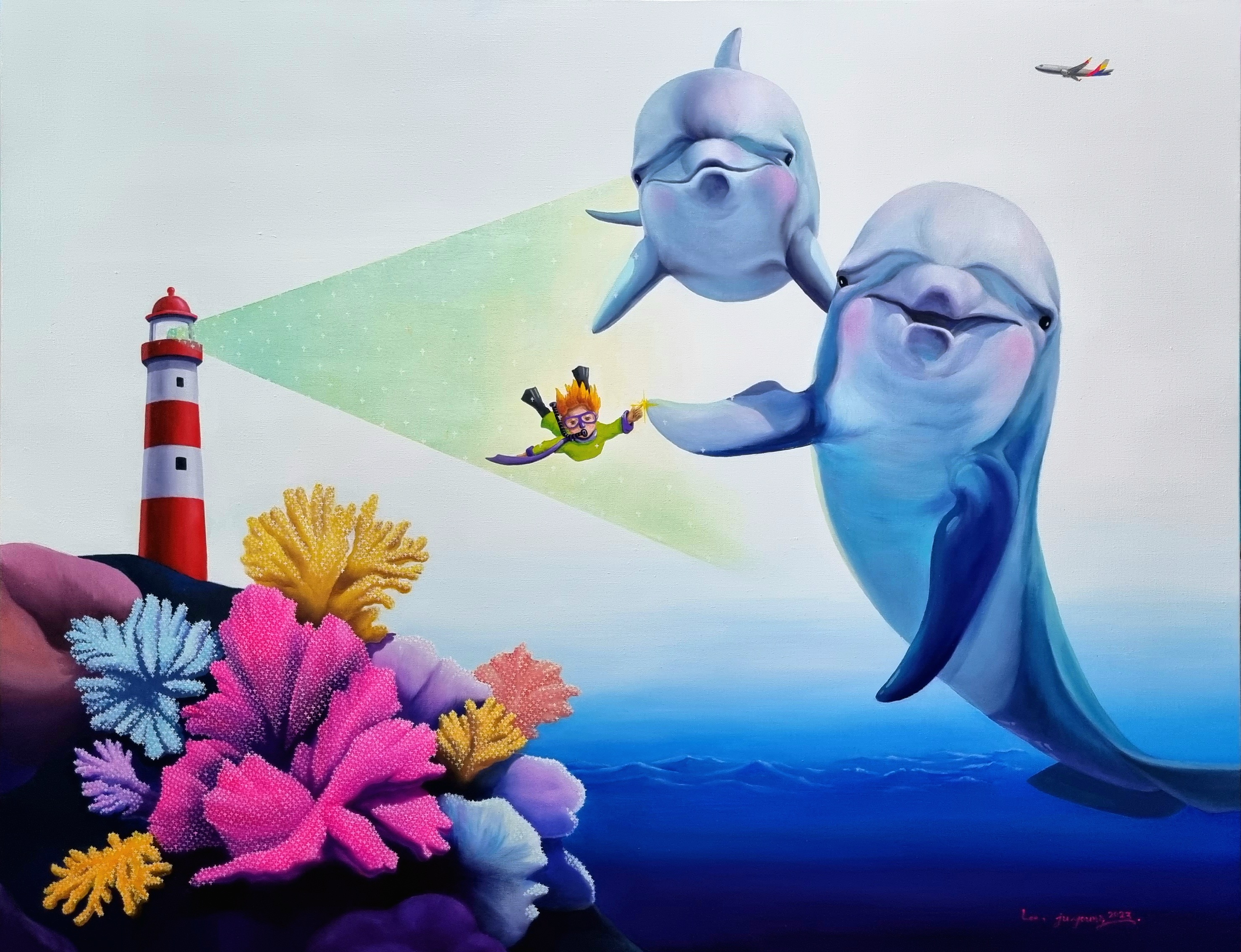 작가는 작품에 있는 등대처럼 인간에게 빛을 비춰주고, 떠오르는 태양과 보름달과 어린왕자와 돌고래처럼 누군가가 기다려주고, 바라봐 주고, 함께하고 있음을 기억하길 바라는 마음을 담았다.