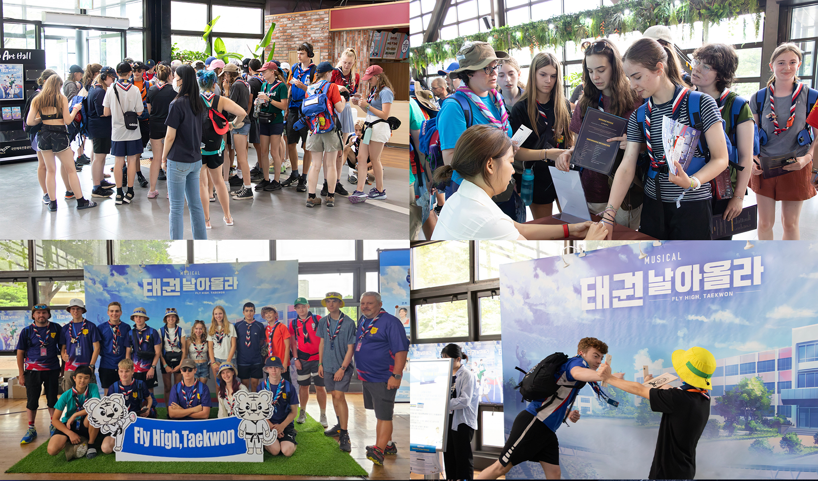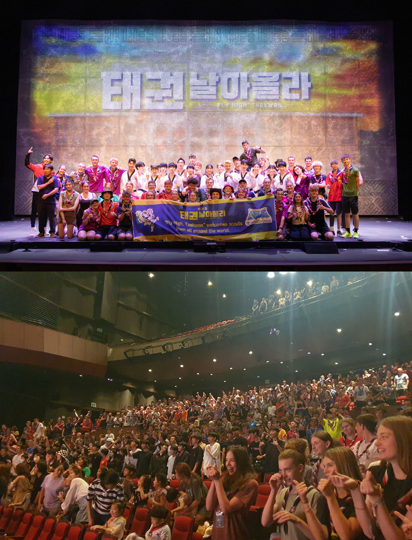 그 첫 번째 날로 오늘 9일(수), 11시, 2시 공연(총 2회)에 약 1,300여 명의 영국 잼버리 스카우트 대원들이 뮤지컬 '태권, 날아올라'를 찾아 태권도의 매력을 한껏 즐겼다. 박진감 넘치는 태권 퍼포먼스와 다채로운 음악이 매력적인 뮤지컬 '태권, 날아올라'를 본 영국 잼버리 스카우트 대원들은 극장이 떠나갈 듯한 함성과 뜨거운 박수로 공연을 즐겼다.