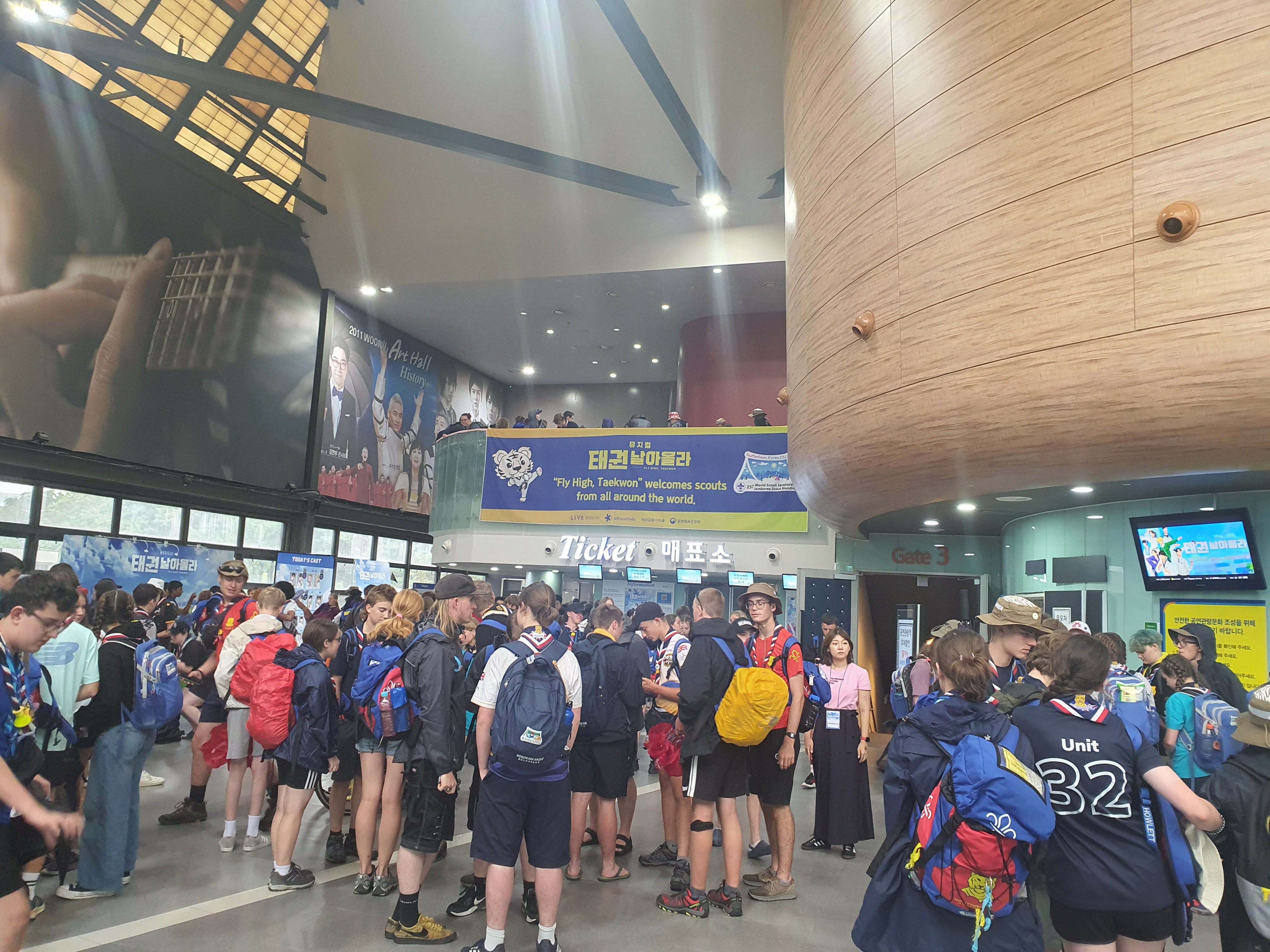 9일, '태권, 날아올라'를 처음 관람한 영국 단원들의 호평이 쏟아지며 스카우트 커뮤니티에 입소문이 퍼져 본 공연 관람을 하고 싶어하는 나라들의 관람 문의가 쏟아졌다. 이에 제작사는 세계 잼버리 스카우트 대원을 대상으로 2,000명 추가 지원을 결정했다.