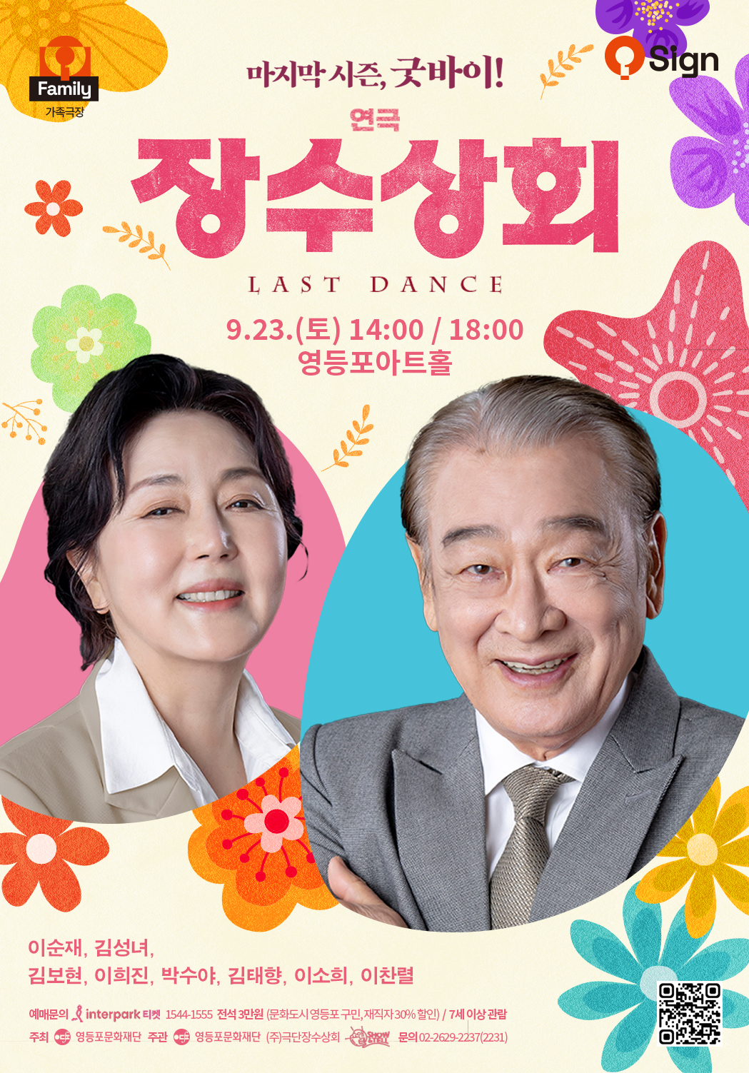 두 번째로 ‘추석 맞이 특별 가족극장’으로 기획한 연극 ‘장수상회’가 함께한다. 영등포아트홀에서 열리는 이번 장수상회 공연에서는 이순재, 김성녀가 출연하며, 라스트 댄스라는 부제와 함께한다.