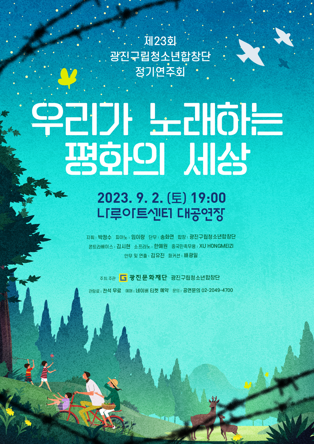 (재)광진문화재단(이사장 김경호)이 오는 9월 2일(토) 19시 나루아트센터 대공연장에서 제23회 광진구립청소년합창단 정기연주회를 개최한다.