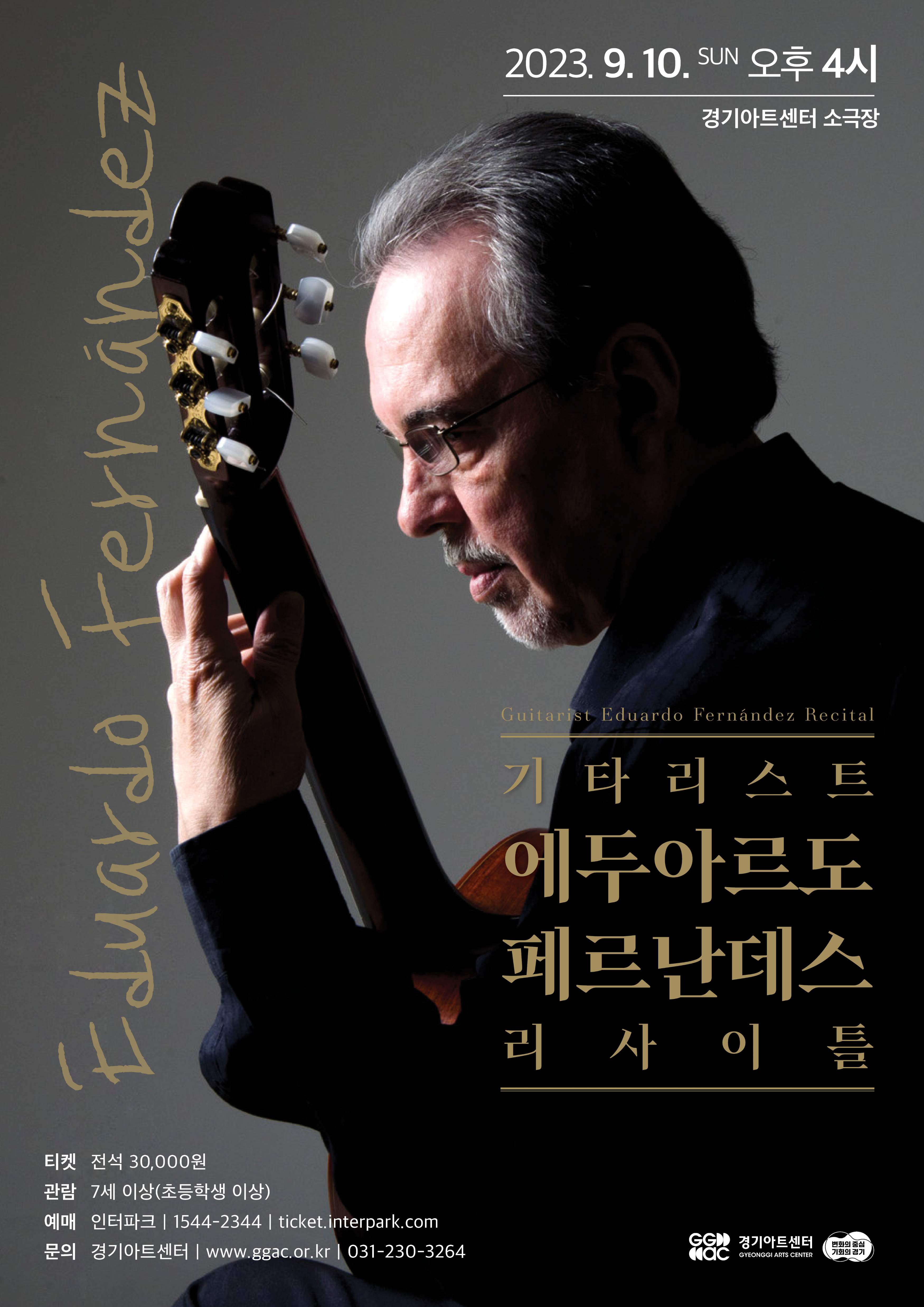 [플레이뉴스 문성식기자] 경기아트센터(사장 서춘기)는 오는 9월 10일 (일) '기타리스트 에두아르도 페르난데스 리사이틀'을 소극장에서 공연한다. 에두아르도 페르난데스(Eduardo Fernández)는 우루과이 몬테비데오 출신의 세계적인 기타리스트로, 거장의 품격이 담긴 무대를 통해 관객들에게 특별한 시간을 선사할 예정이다.