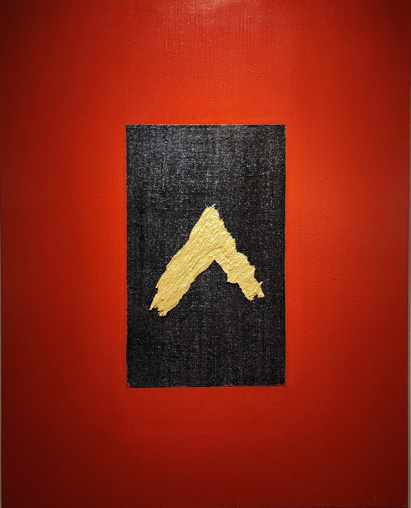 진중한 색감의 옻칠 위에 금분으로 새겨진 이미지 구성은 서로 상반된 색의 대비가 넓은 인생 스펙트럼을 함축적으로 이야기하며, 다채로운 금빛 조각들은 평소에 생각하고 설계되었던 문양들이 작품 안에서 예술로 승화 되었다. 단순해 보이는 금빛 형상들은 보는 관점에 따라 우주가 될 수 있고, 원초적 인간의 삶을 예술로 표현한 순간 포착이기도 한다.