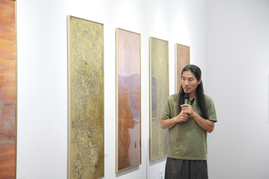 이번 전시에서는 더 큰 진폭과 진동으로 아름다운 소리를 만들었으며 알루미늄, 구리, 동판을 두드려 화(Fire), 풍(Air), 수(Water), 지(Earth), 생(Life)의 5원소를 그려낸 작품들을 선보인다.