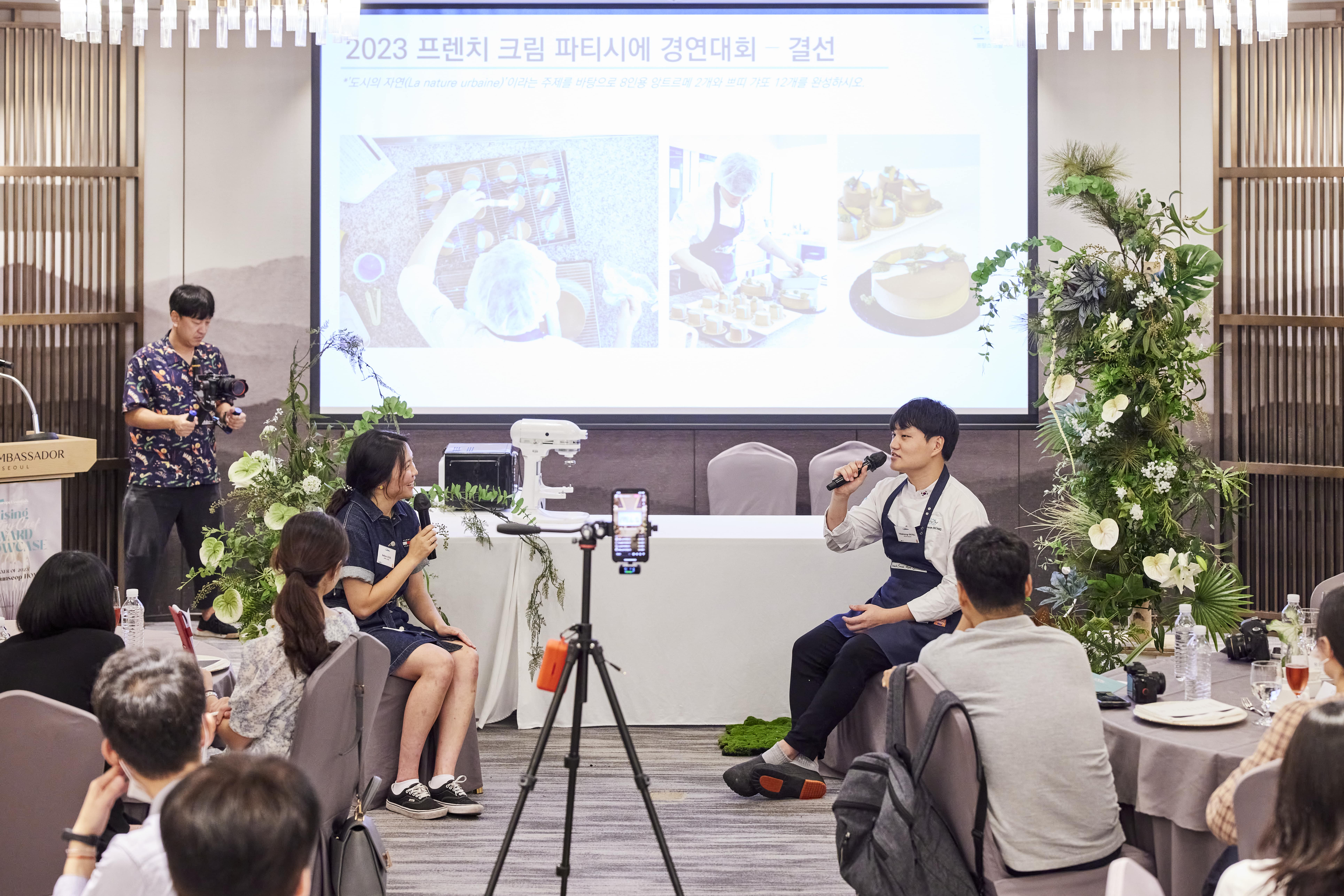 1부에서는 유럽 에센셜 캠페인 소개를 시작으로 홍문섭 셰프와의 대회 우승 토크쇼가 진행됐다. 2023 페이스트리 챌린지에 출품한 ‘가평 잣’을 활용한 레몬 잣 타르트, 2023 프렌치 크림 파티시에 경연대회 예선에서 선보인 라프라 시그니처 메뉴 ‘이베리스’와 준결선의 바질을 활용해 플레이팅 디저트로 만든 ‘파리 브레스트’, 결선의 ‘도시의 자연’이라는 주제를 해석한 ‘카사블랑카의 봄’, 마지막으로 대한민국 우승자 대표로 다녀온 ‘페랑디 파리(Ferrandi Paris) 크림 제과 연수’ 뒷이야기까지 생생하게 만나볼 수 있었다.