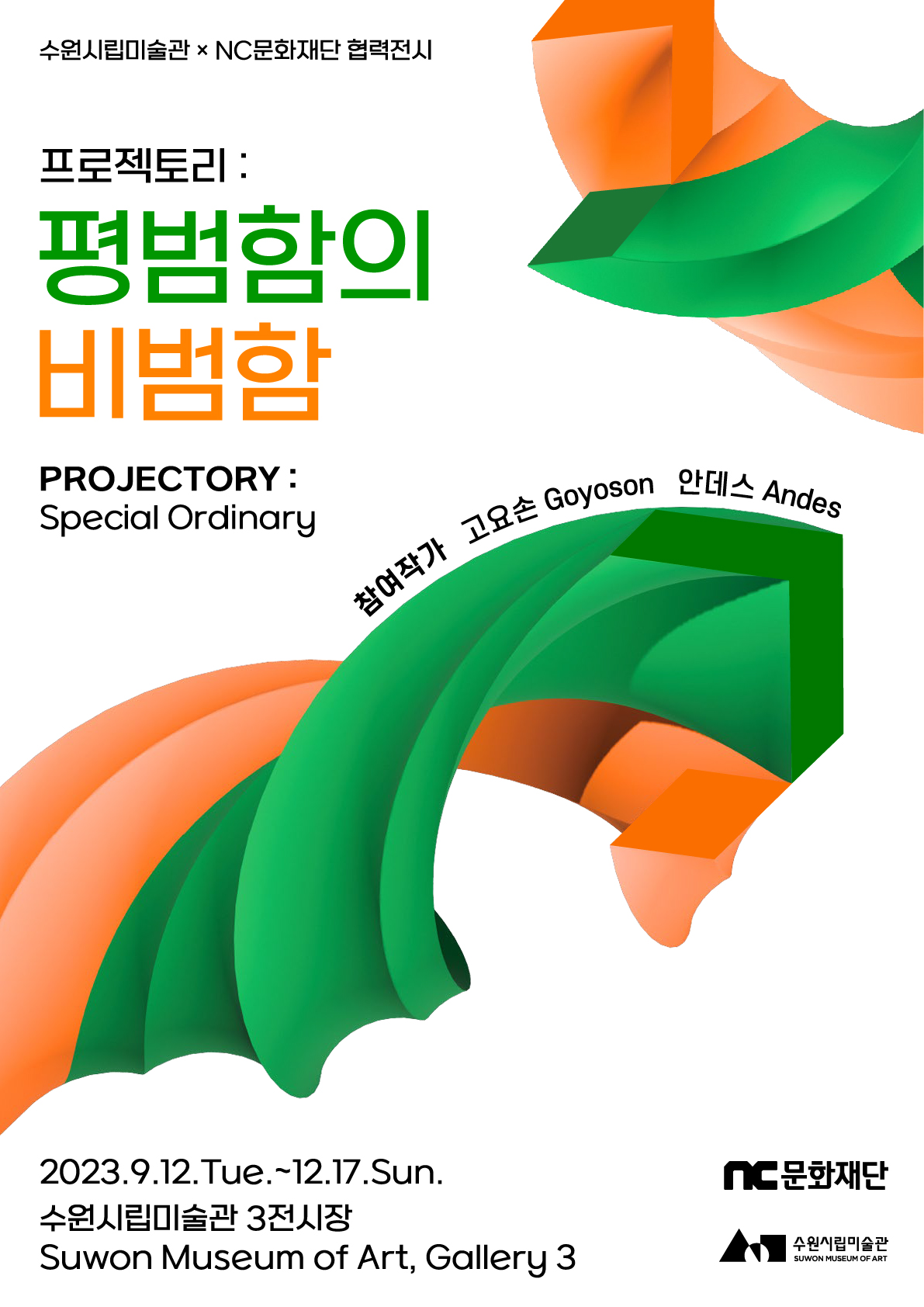 수원시립미술관은 지난 5월 엔씨문화재단과 수원특례시 청소년 창의성 함양을 위해 업무협약을 체결했다. 《프로젝토리: 평범함의 비범함》은 그 결과물로 엔씨문화재단의 청소년 창의성 개발 사업 '프로젝토리(Projectory)'와 현대미술 작가 고요손, 안데스가 참여한 전시가 함께 진행되는 새로운 참여형 교육 전시다.