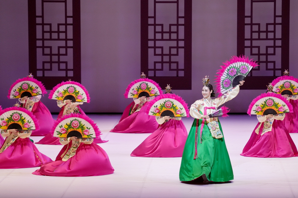 | 6 | 부채춤 | 죽선과 한지의 소박하고 운치어린 부채의 움직임은 마치 만개한 연꽃이 물결 따라 춤을 추는 듯 포근함과 우아함으로 감싸주며 부채를 펴고 접는 꽃부채의 흐름에 따라 다채로운 색조와 화려한 춤사위를 연출하며 고도의 조화와 율동감을 표현하는 무용이다. |