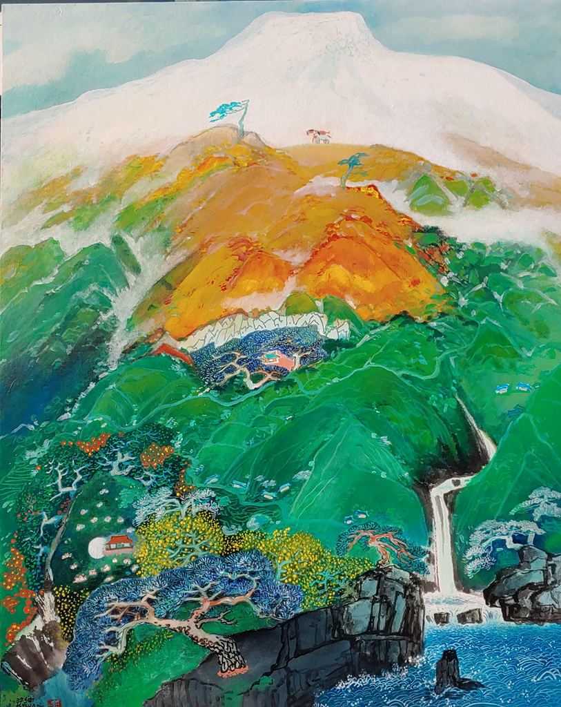 인간들의 삶이 행복, 사랑, 건강으로 가득한 시간이 되기를 염원하는 뜻도 새겼다."고 말했다. 작가는 개인전 43회 진행한 중견작가로 이번 전시에는 물과 산을 보고 사람과 세상의 이치를 본다는 뜻을 지닌 ‘간수간산(看水看山) 간인간세(看人看世)’의 조선 중기 대유학자 남명 조식 선생의 사상을 녹인 작품으로 관람객을 맞이할 예정이다.