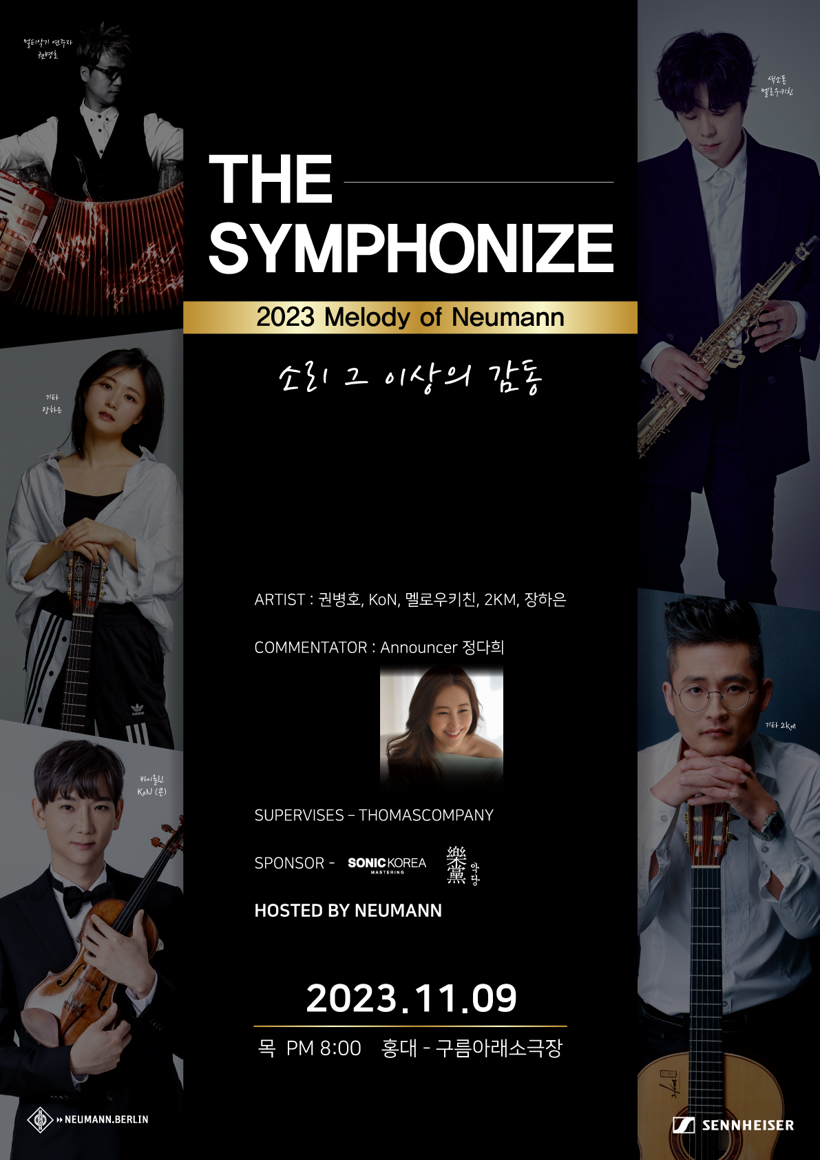 [플레이뉴스 문성식기자] 독일 젠하이저의 자회사인 음향기기 전문 기업 노이만은 가을이 깊어가는 11월을 맞아 국내 정상급 뮤지션들이 연주하는 아름다운 선율로 감성을 채워 줄 음악 콘서트 ‘2023 멜로디 오브 노이만: 더 심포니즈(THE SYMPONIZE)’를 개최한다고 19일 밝혔다.