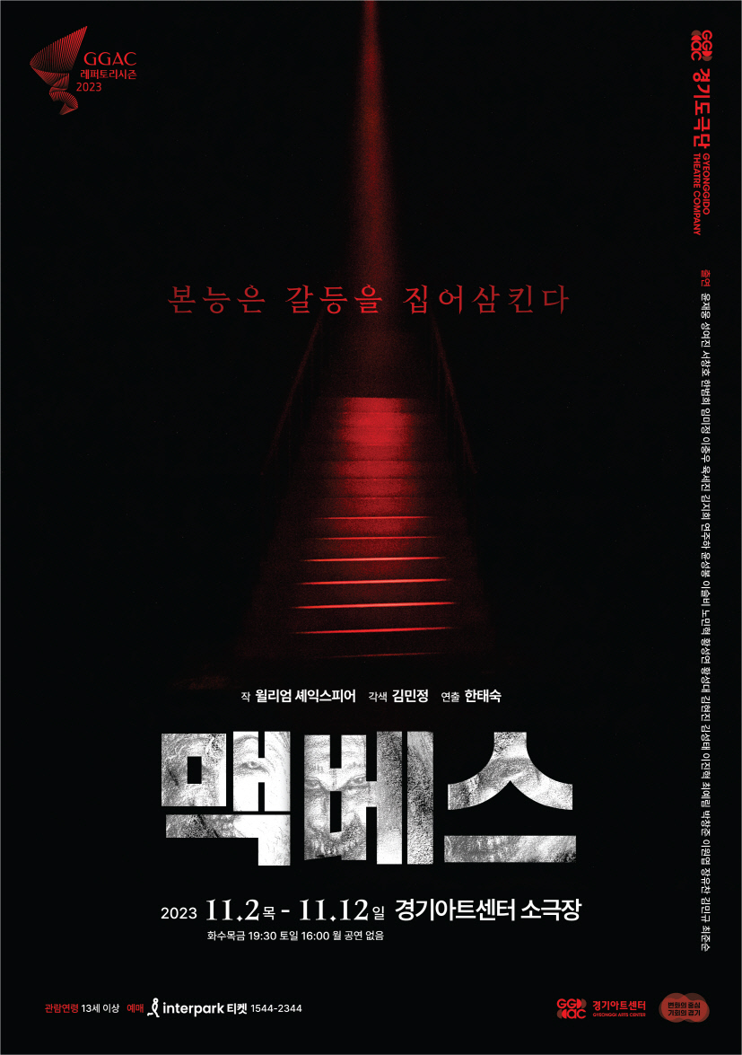 [플레이뉴스 문성식기자] 경기도극단이 2023년 레퍼토리 시즌 마지막 작품인 연극 '맥베스'를 오는 11월 2일부터 11월 12일까지 경기아트센터 소극장에서 선보인다.