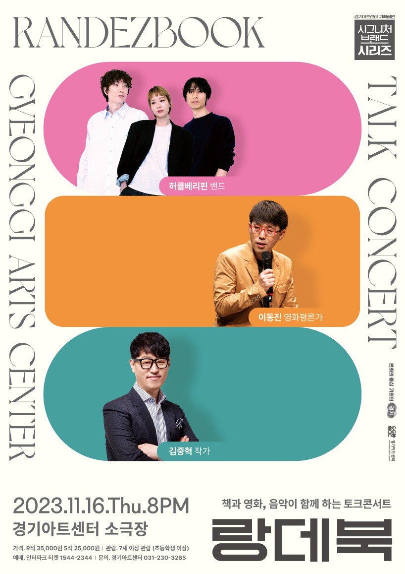 공연 관계자는 “오랜 시간 관객들의 사랑을 받으며 매진을 거듭해온 토크콘서트 '랑데북' 의 마지막 무대라 아쉬움이 크다”며 “많은 지지와 호응을 보내준 관객께 감사하고, 또 다른 즐거움을 선사하는 공연을 기획해 보여드리겠다”고 전했다. 공연예매는 경기아트센터 홈페이지(www.ggac.or.kr)와 인터파크 티켓(ticket.interpark.com)에서 가능하다.