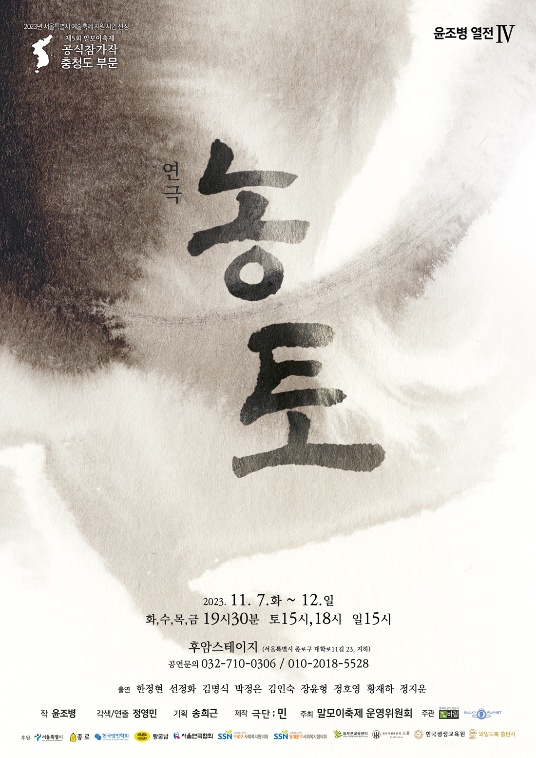 1107()부터 02()까지 공연하는 극단 의 연극'농토'는 가진 자에 의해 억압받고 착취당하는 민초들의 삶을 사실적으로 묘사하여 사실주의 연극의 계승자로 평가받는 고() 윤조병 작가의 1987년 작품이다.