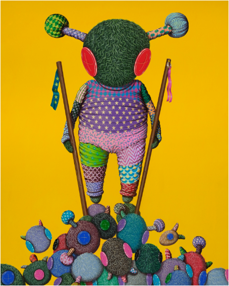 수안자야 켄컷 (b.1994, Korea) Sacred Sticks, 150x125cm, Acrylic on Canvas, 2023