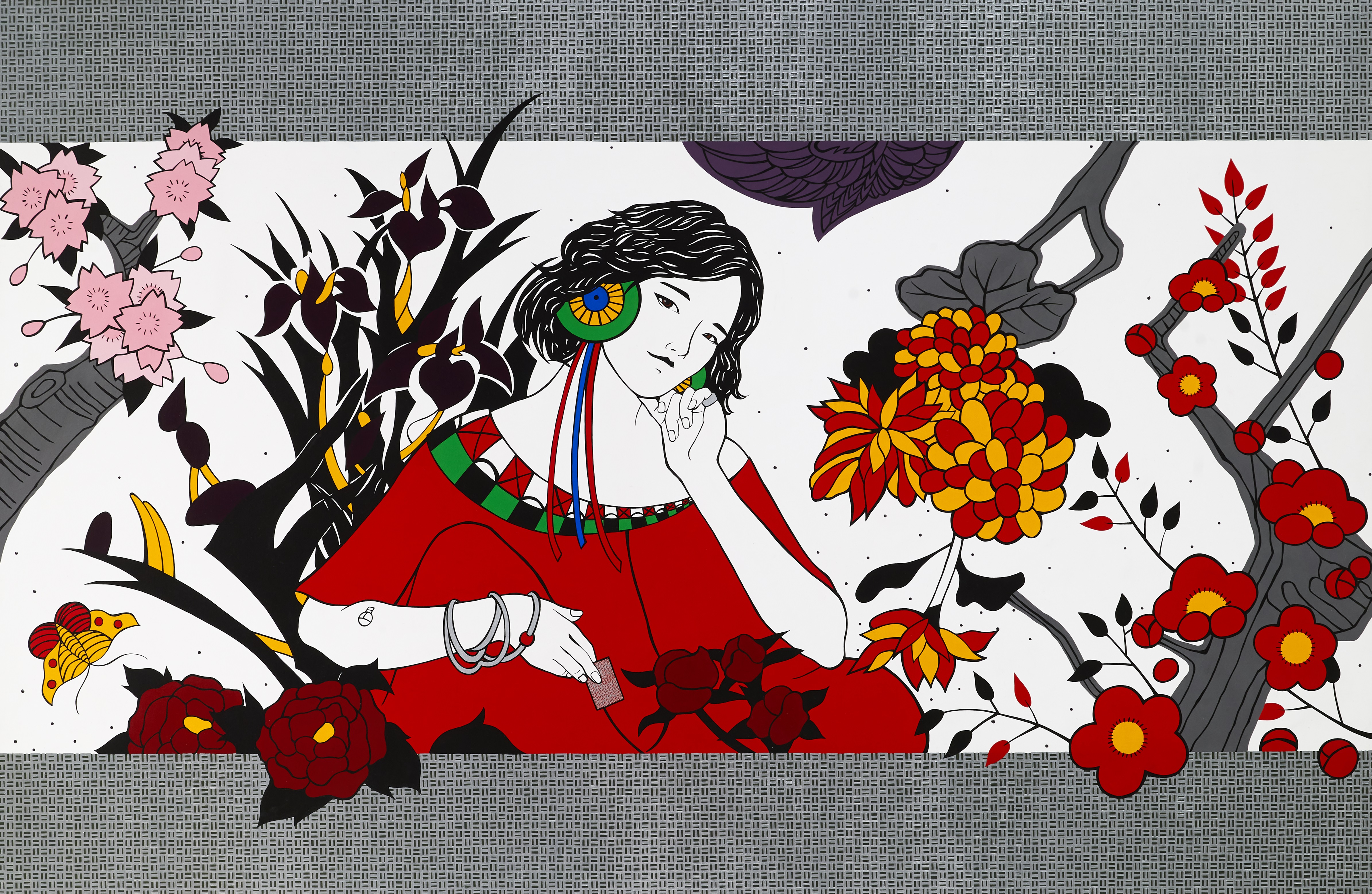 우리에게 친숙한 ‘화투’를 모티브로 한 그의 작품은 동양과 서양의 이미지가 공존하며 묘한 감정을 불러일으키게 한다. 흔히 일본에서 한국인을 우매하게 만들기 위해 전파한 것으로 알려져 있는 ‘화투’를 나름의 독창적인 방식으로 진화시키며 예술로서 승화하는 작품이다.