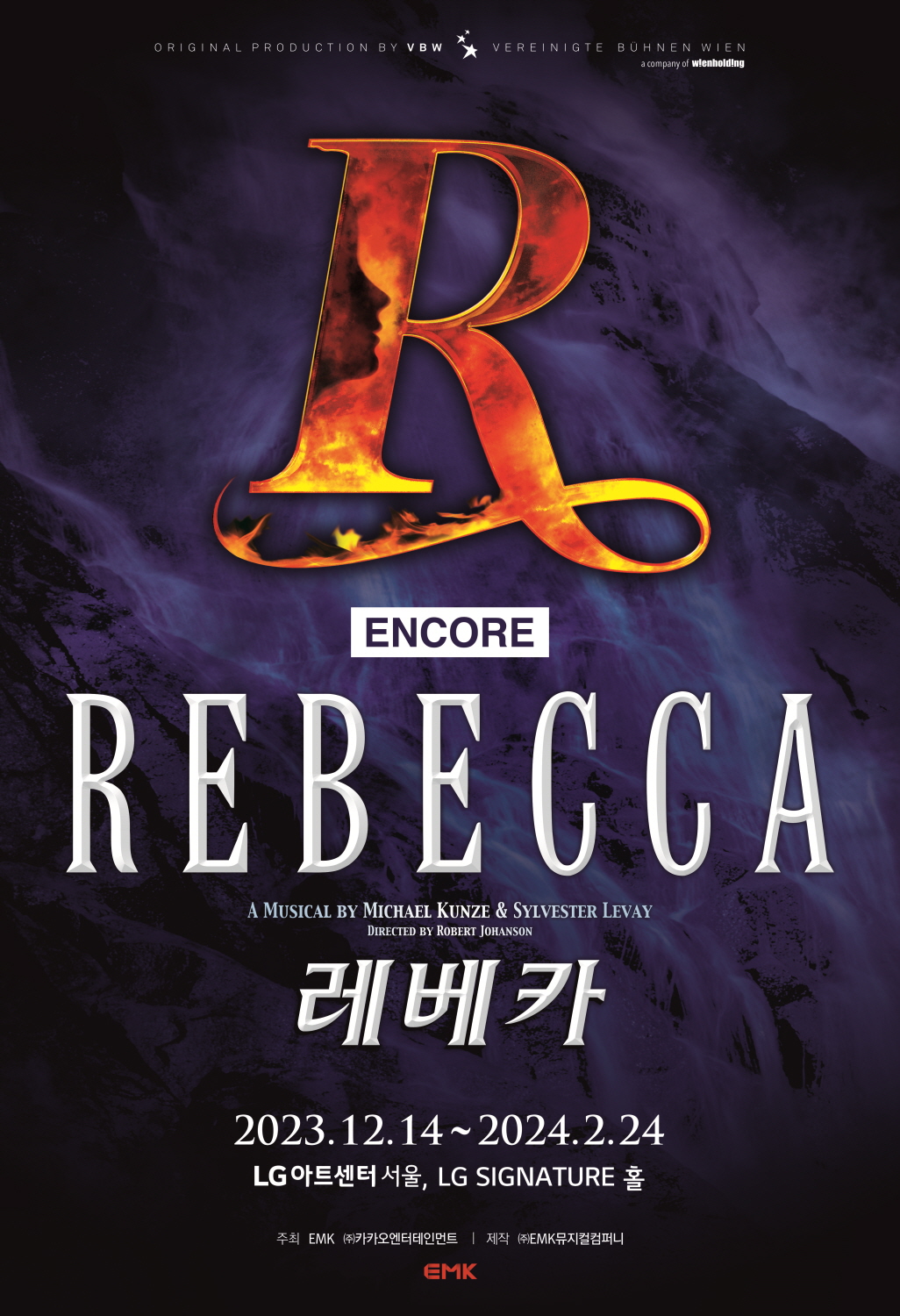지난 8월 19일 서울 블루스퀘어 신한카드홀에서 일곱 번째 시즌을 개막한 뒤 11월 19일 마지막 공연을 앞두고 있는 뮤지컬 ‘레베카’가 오는 12월 14일부터 2024년 2월 24일까지 흥행 전설의 시작인 LG아트센터 서울, LG SIGNATURE홀에서 앙코르 공연에 돌입한다. 2013년 초연이 펼쳐진 LG아트센터에서 10주년의 영광을 이어가는 뮤지컬 ‘레베카’의 선 굵은 역사가 관객들의 마음을 사로잡을 전망이다.