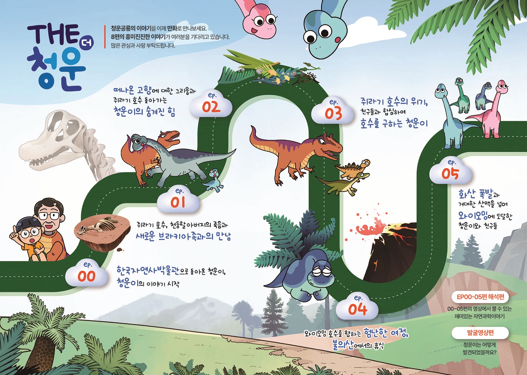 이에 한국자연사박물관은 ‘THE(더) 청운’이라는 주제 아래 대표 전시물인 중생대 쥐라기시대 브라키오사우르스 공룡화석인 ‘청운이’를 중심으로 하는 총 8편의 애니메이션을 준비했다.