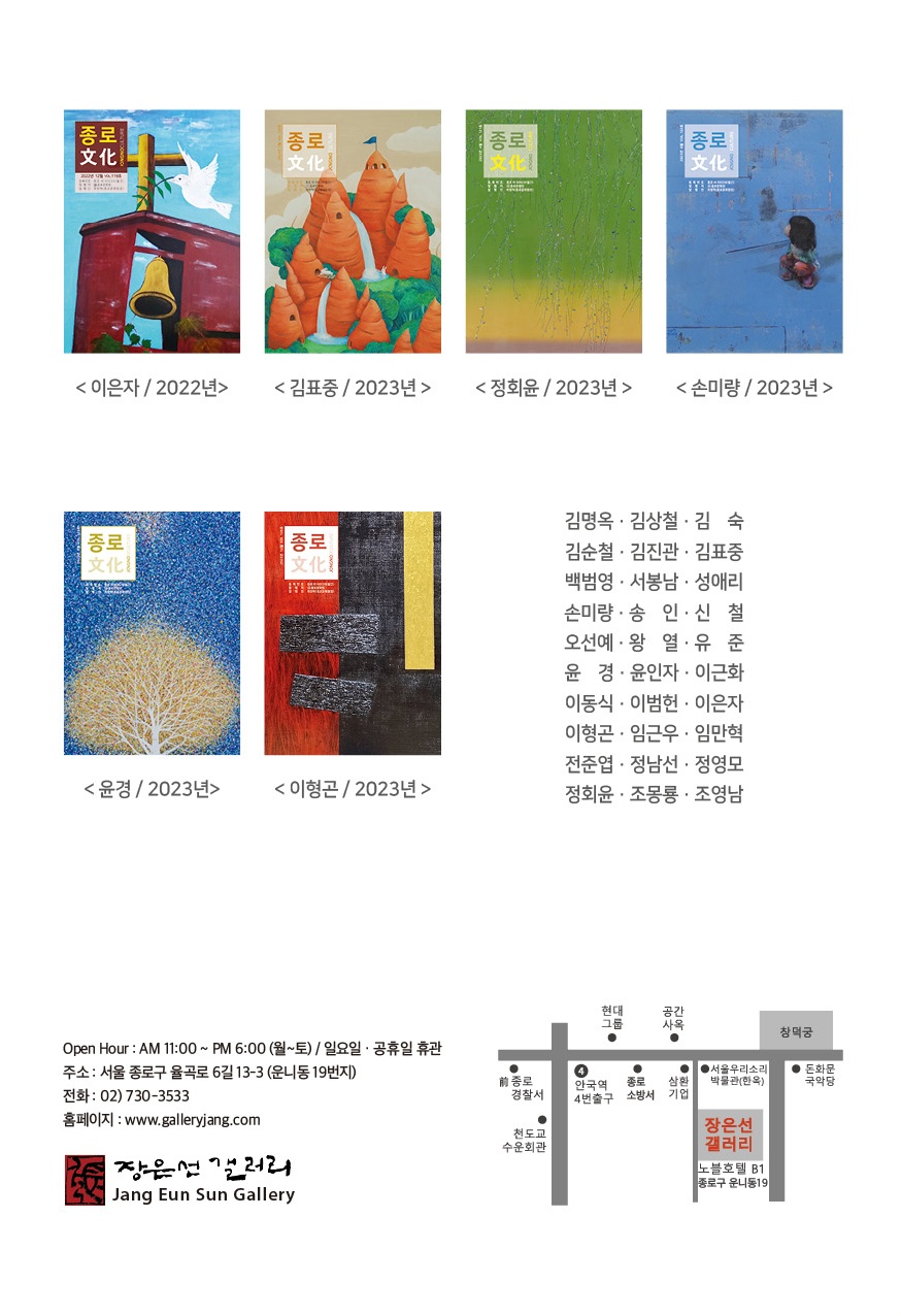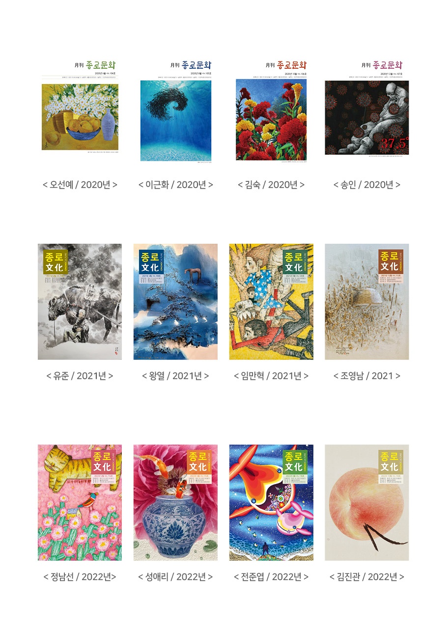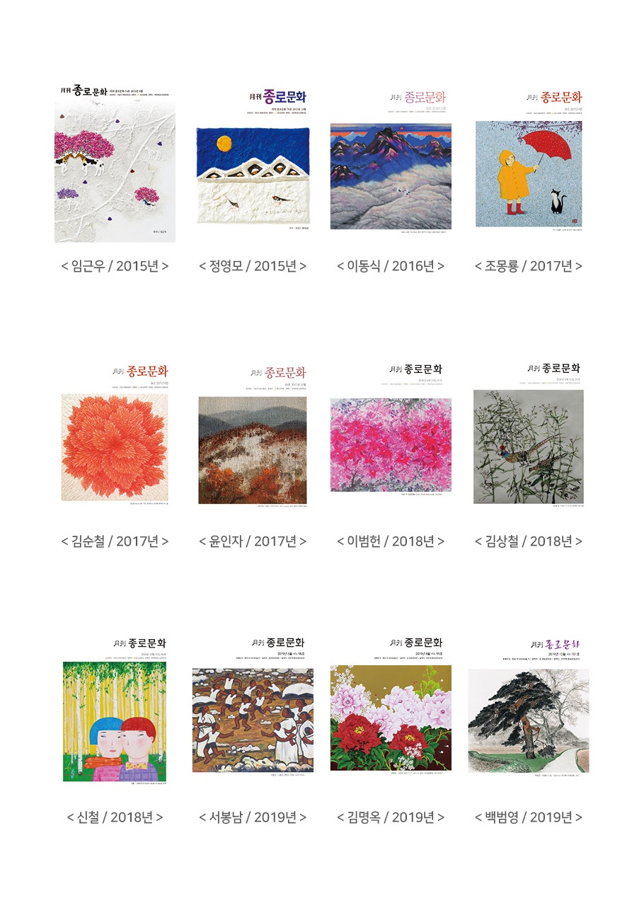 [플레이뉴스 문성식기자] 2015년부터 종로문화원에서 발행하는 월간종로문화 책자의 표지에 장은선갤러리 작가들이 소개됐다.