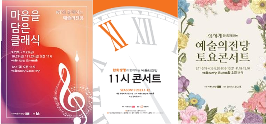 12월 1일(금) KT와 함께하는 예술의전당 마음을 담은 클래식(이하 ‘마음클래식’)을 시작으로 12월 14일(목) 한화생명과 함께하는 예술의전당 11시 콘서트(이하 ‘11시 콘서트’), 12월 16일(토) 신세계와 함께하는 예술의전당 토요콘서트(이하 ‘토요콘서트’)를 차례로 선보인다.