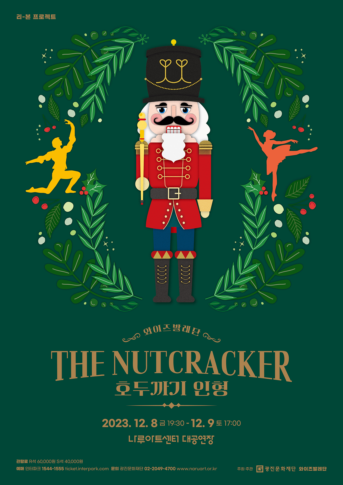 ‣ 공 연 명 : 와이즈발레단 '호두까기 인형' ‣ 공연일시 : 2023. 12. 8(금) 19:30 / 2023. 12. 9(토) 17:00 ‣ 공연장소 : 나루아트센터 대공연장 ‣ 주최/주관 : (재)광진문화재단, 와이즈발레단 ‣ 소요시간 : 110분(인터미션 15분 포함) ‣ 입장연령 : 만 7세 이상 ‣ 입 장 권 : R석 60,000원 / S석 40,000원 ‣ 예약문의 : 02-2049-4700 |
