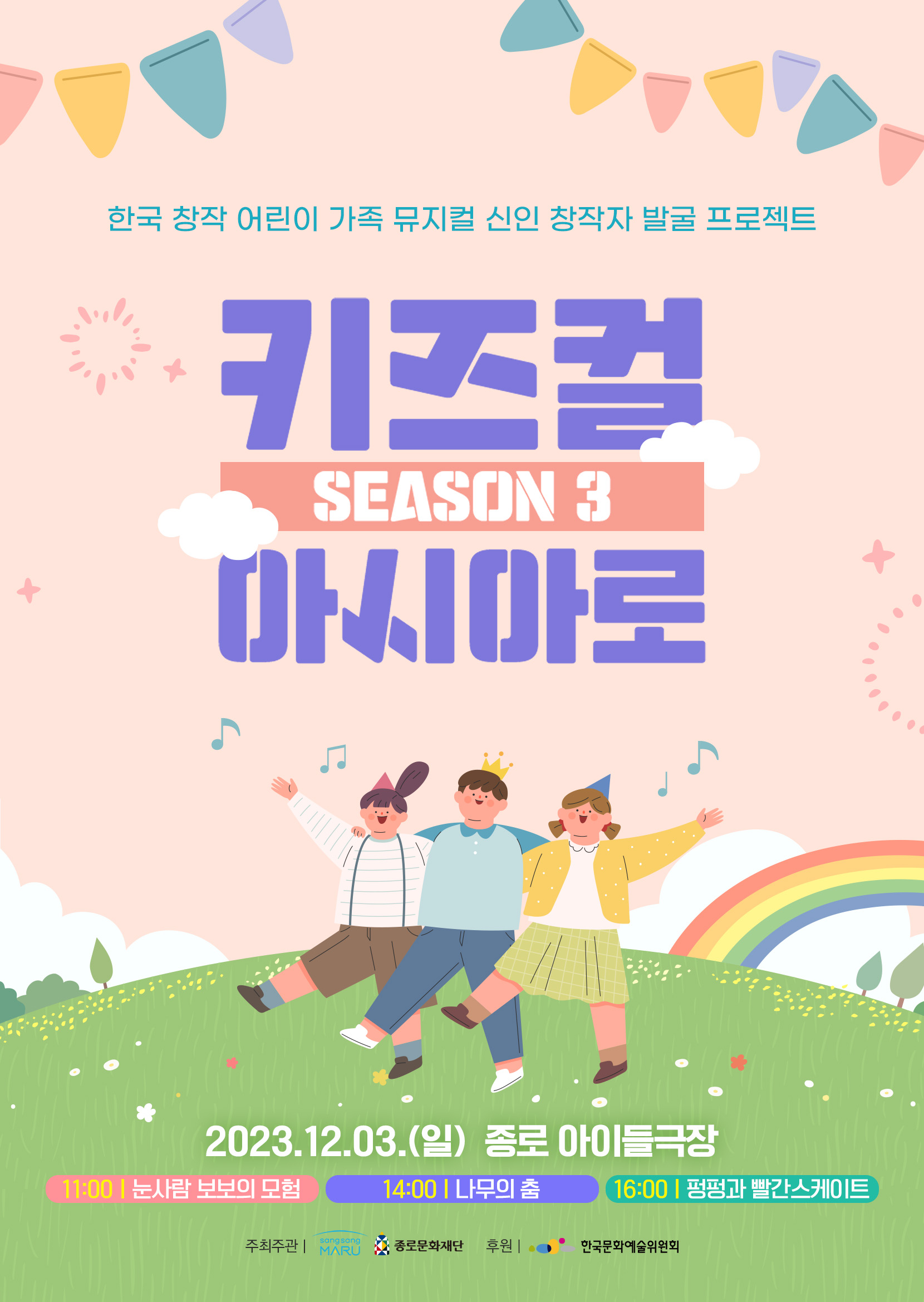 [플레이뉴스 문성식기자] 어린이·가족 공연 전문기업 ㈜문화공작소 상상마루와 종로아이들극장이 공동으로 개최하는 '키즈컬 아시아로 시즌3' 리딩 쇼케이스를 오는 12월 3일(일) 종로아이들극장에서 개최한다.