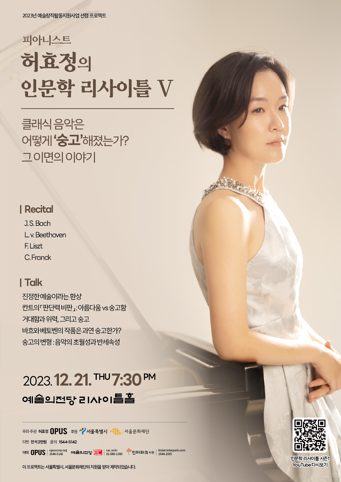 오랜 시간 음악가이자 학자로 클래식 음악의 형성과정을 연구해온 허효정의 숙고가 담길 피아니스트 허효정의 인문학 리사이틀 V ‘클래식 음악은 어떻게 숭고해졌는가? 그 이면의 이야기’ 는 11월 16일 광주 유스퀘어 금호아트홀 공연에 이어, 오는 12월 21일(목), 오후 7시 30분 예술의전당 리사이틀홀에서 진행될 예정이다.