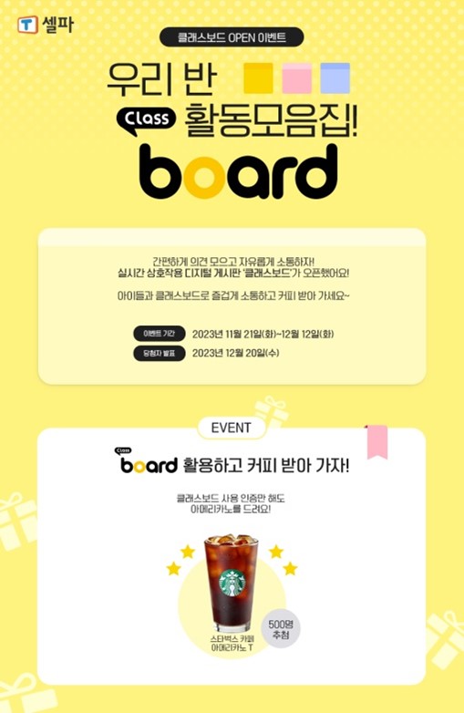 -오는 12일까지 클래스보드 오픈 이벤트 진행…추첨 통해 500명 커피쿠폰 증정