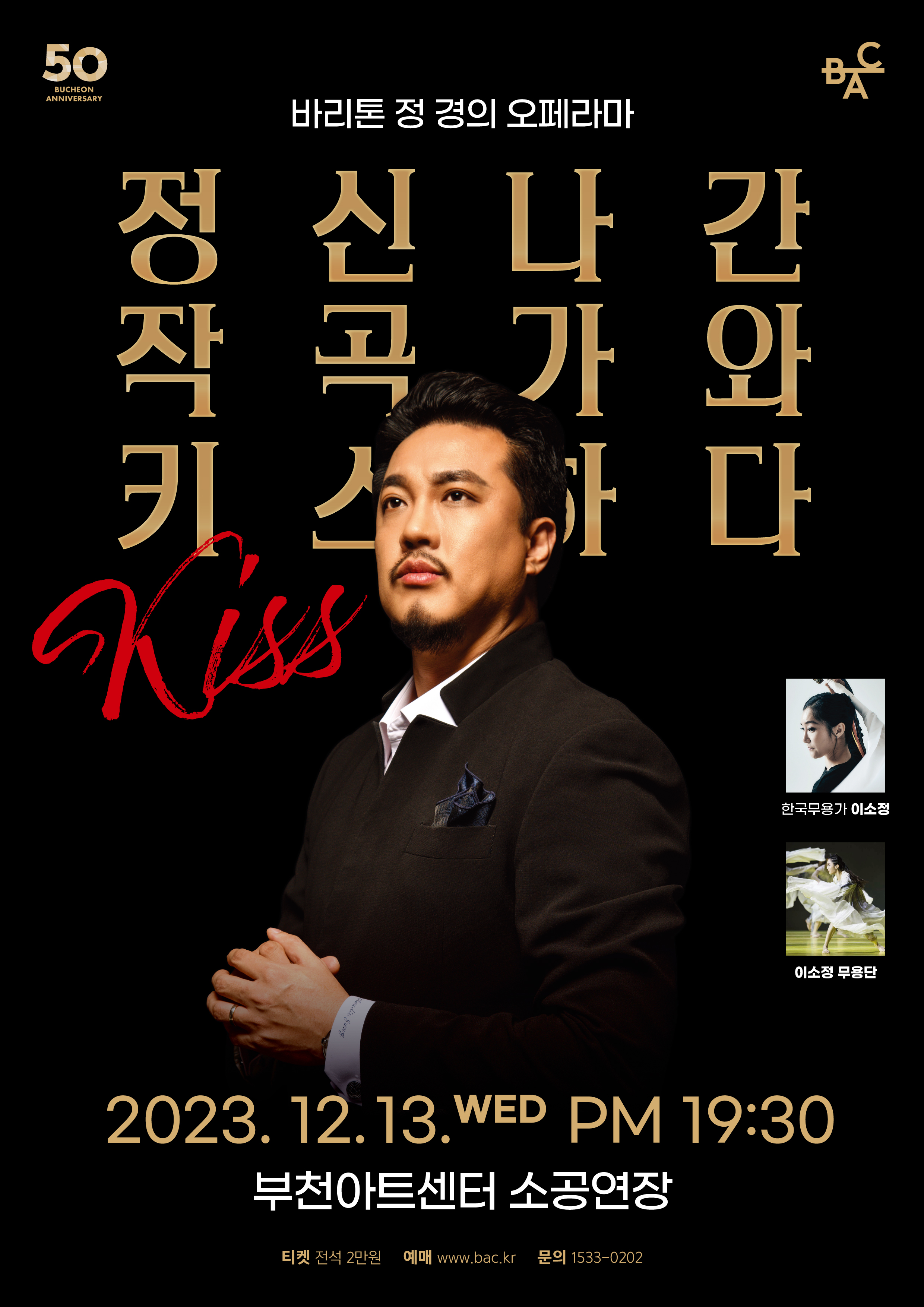 [플레이뉴스 문성식기자] 오는 12월 13일(수) 오후 7:30 부천아트센터 소공연장에서 바리톤 정 경이 오페라마 공연을 진행한다. 부천아트센터에서 펼쳐지는 이번 공연은 한 해를 마무리하며 관객들에게 특별한 12월의 기억을 선사할 예정이다.