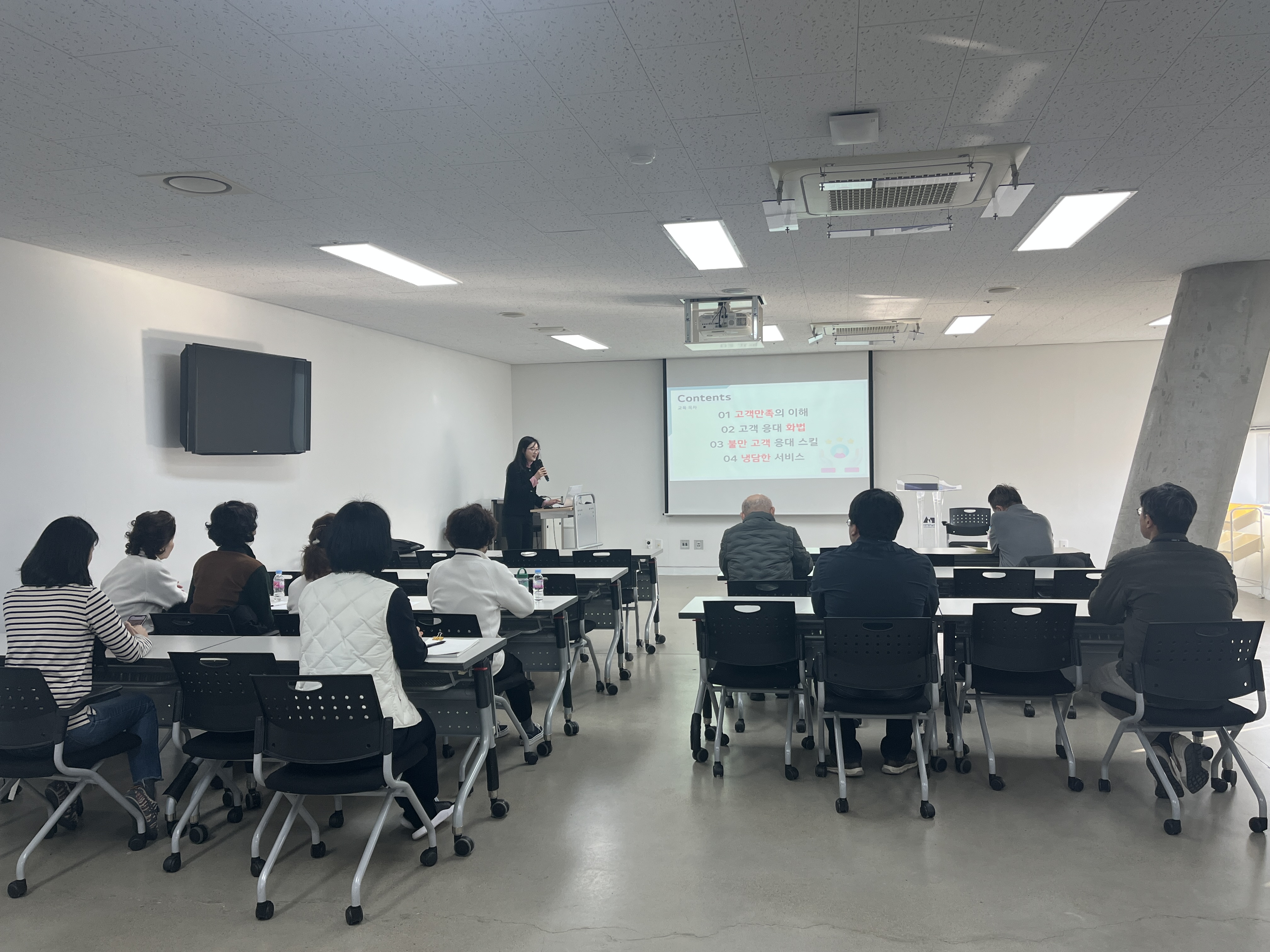 고객 응대 및 커뮤니케이션 전문 강사가 '서비스 마인드의 중요성' ‘관람객을 대하는 마음가짐’, '응대 커뮤니케이션 개선' ‘좋은 사례와 나쁜 사례’등을 주제로 고객서비스 개념에 대한 이해와 관람객 응대 기법에 대해 강의했다.