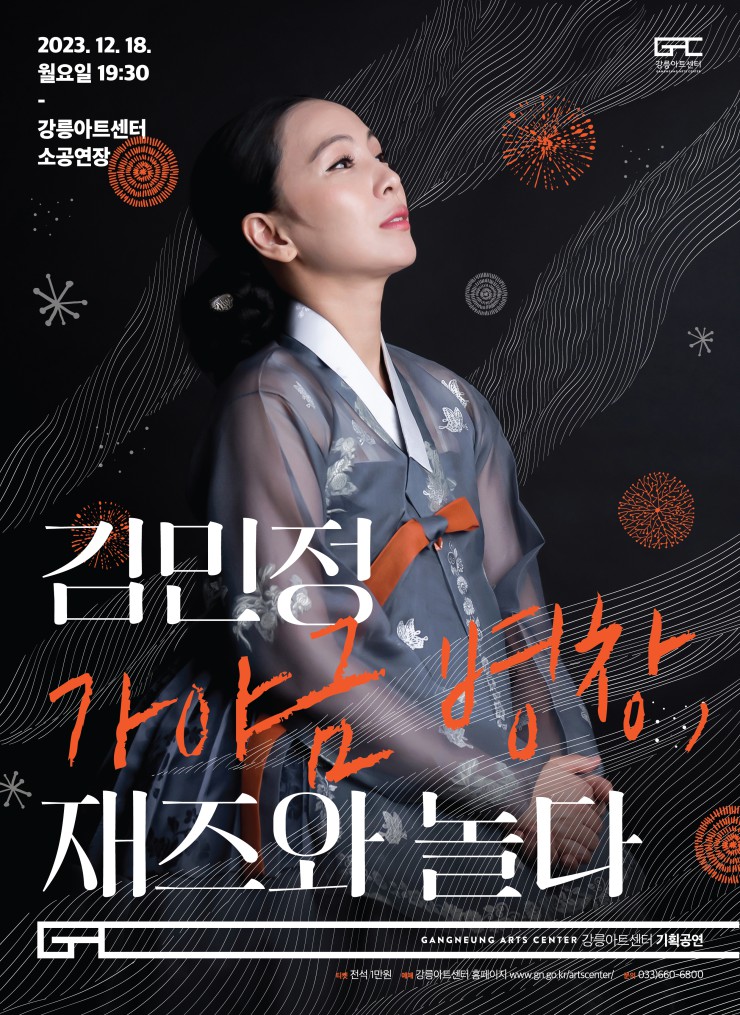 [플레이뉴스 문성식기자] 국악인 김민정이 오는 12월 18일(월) 저녁 7시 30분 강원도 강릉아트센터 소공연장에서 ‘가야금병창, 재즈와 놀다’ 공연을 연다.