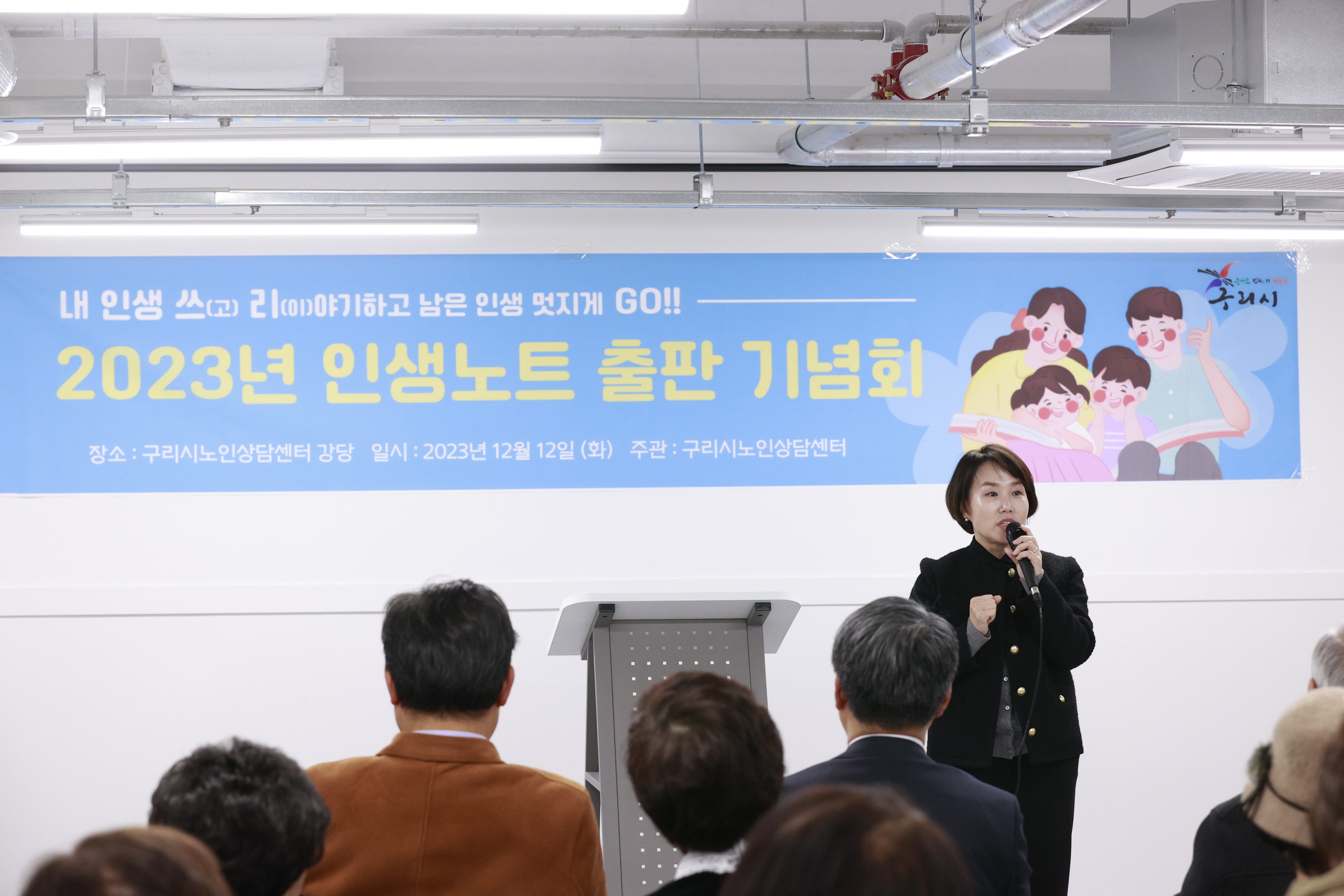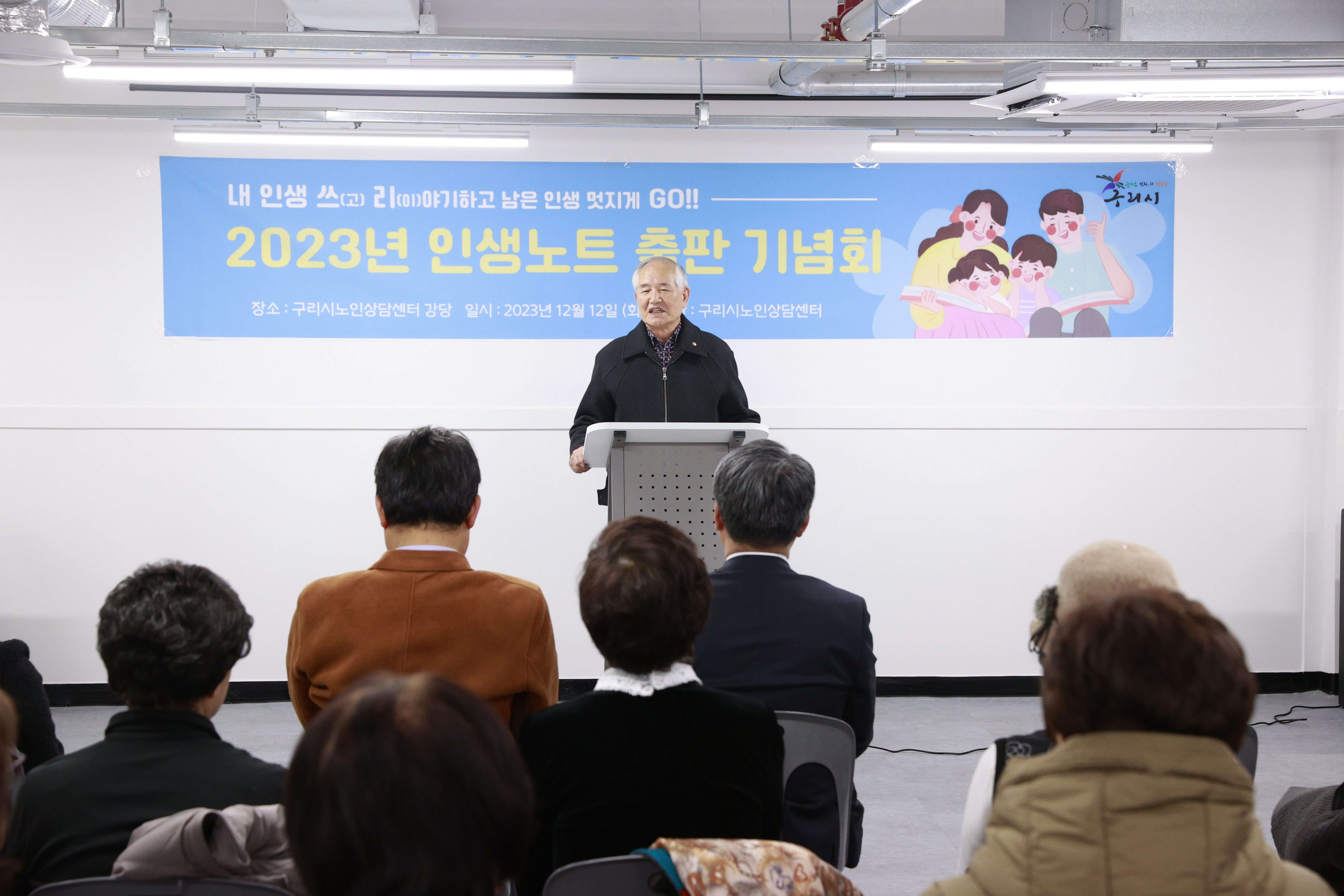 인생노트 출판기념회에는 장수용 대한노인회구리시지회장, 남경미 구리시노인상담센터장, 김영훈 윤슬사진촬영연구소 대표, 송진호 변호사, 정경진 원장 등과 10명의 어르신 참가자, 그리고 그들을 축하하기 위해 가족 친지 50여명이 참석했다.