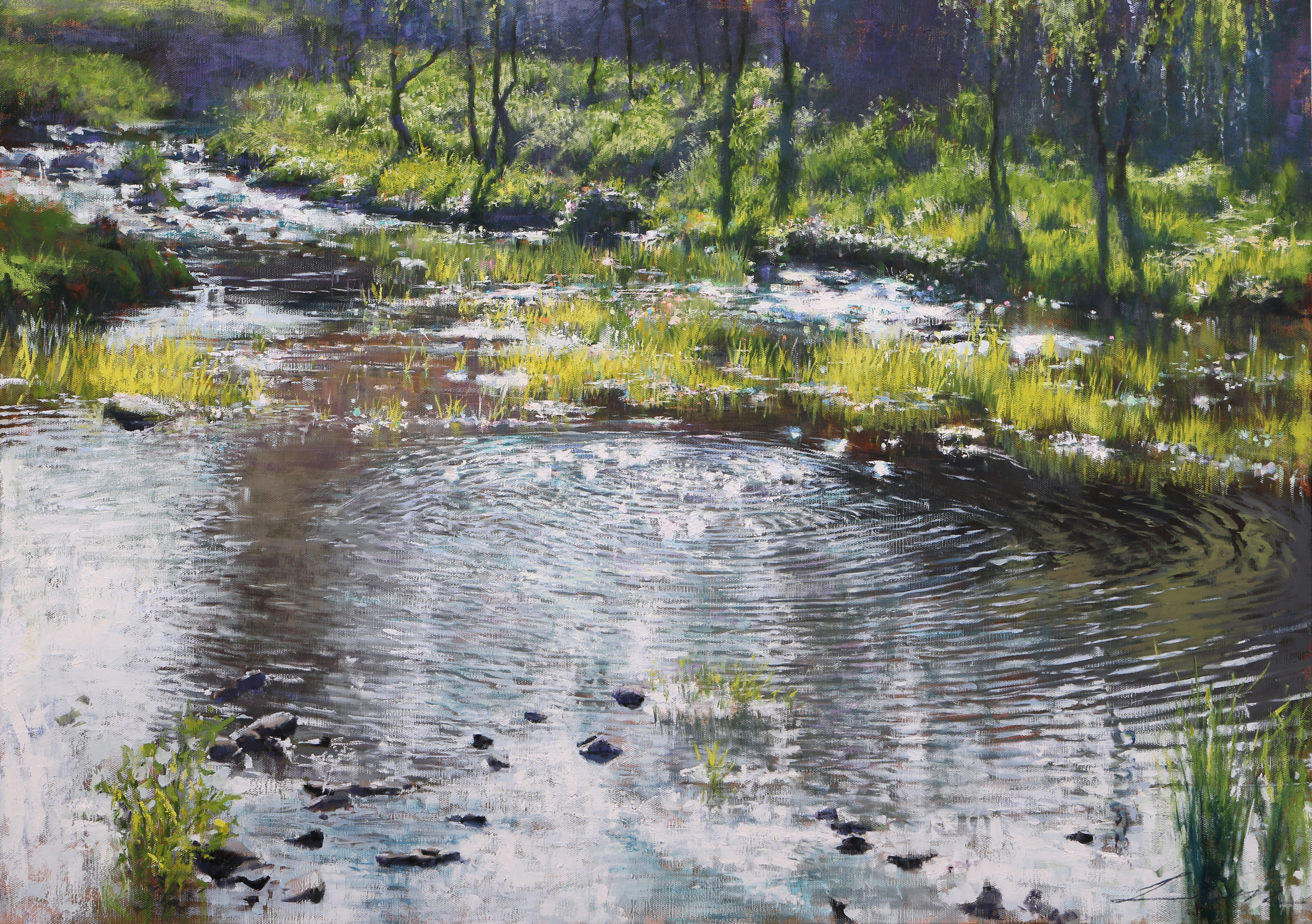 물감 조각조각을 캔버스에 이어 붙여 소나무의 껍질이나 굳은살과 같이 시간의 겹으로 경험의 외피를 쌓으며 두꺼운 내면의 시간을 이해하고자 한 이원태 작가, 자연에 집중하며 색채론을 기반으로 빛의 팽창에 대한 해석을 유화물감의 특성과 다양한 채색 방법을 사용하여 자연의 경이로움 속 희망과 믿음을 담은 임민성 작가,