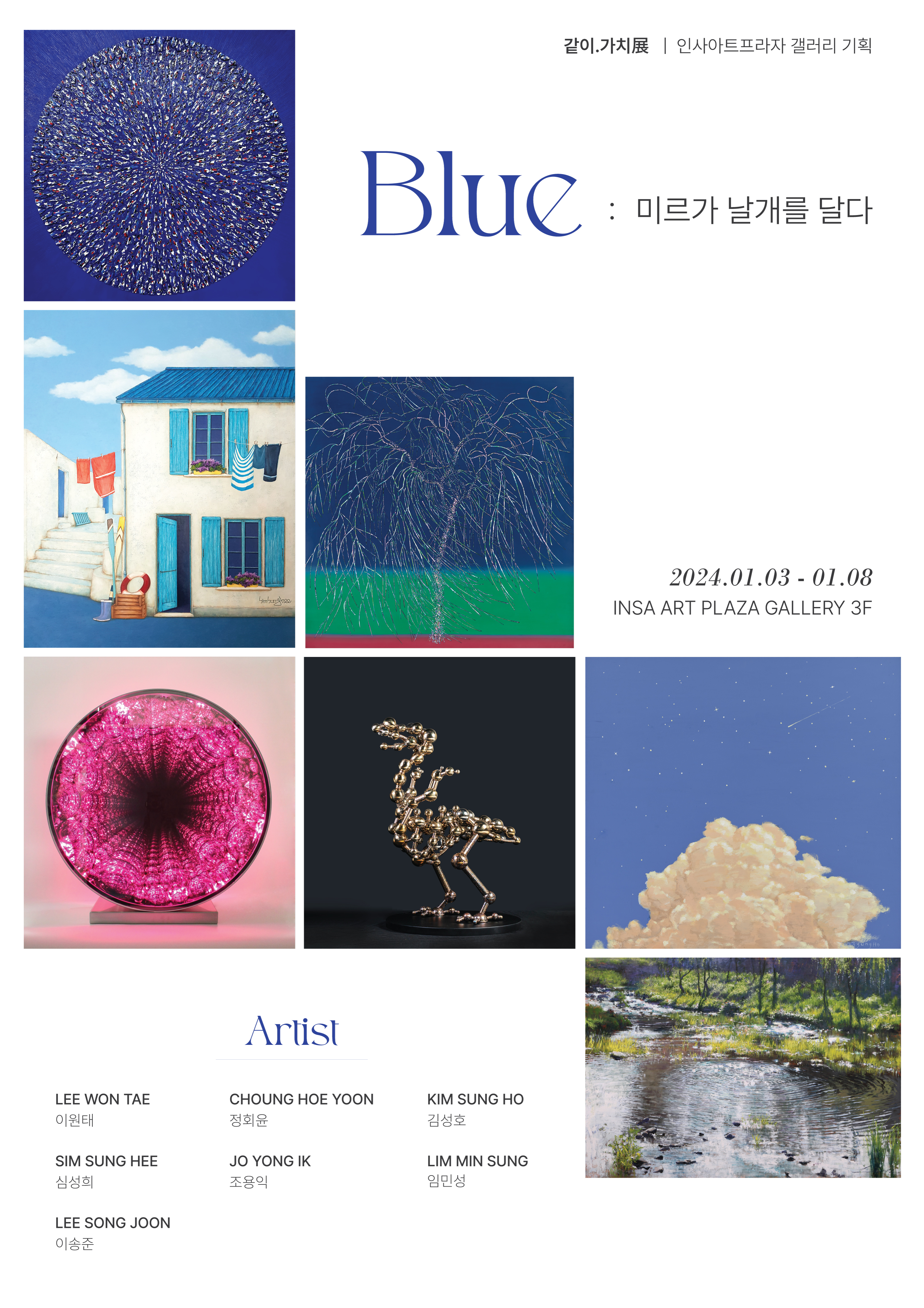 '같이·가치전' "Blue-미르가 날개를 달다”는 인사아트프라자 갤러리 3층(서울시 종로구 인사동길 34-1)에서 1월 3일(수)부터 1월 8일(월)까지 무료로 감상할 수 있다.