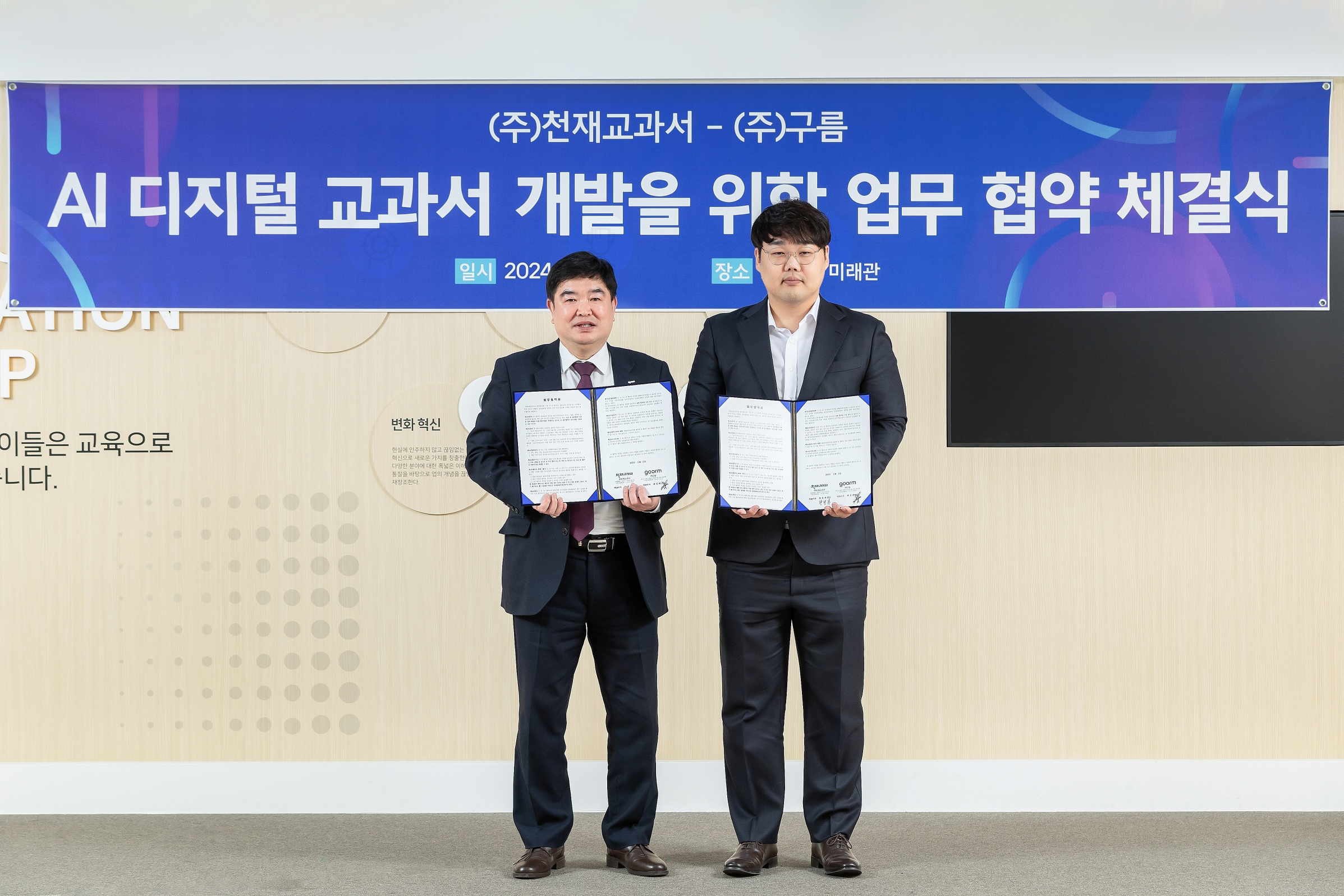 [플레이뉴스 문성식기자] 천재교과서는 AI·SW 교육 기업 구름과 정보교과 AI디지털교과서 공동출원을 위한 공동 사업 계약을 체결했다고 밝혔다.