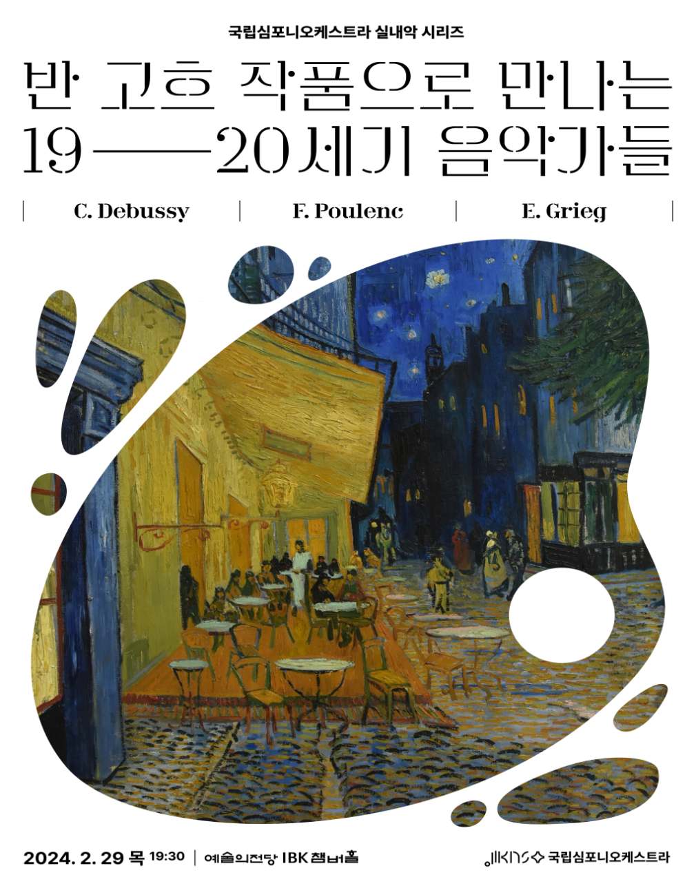 드뷔시, 그리그, 풀랑크 등 프랑스 인상주의로 대표되는 작곡가들의 실내악을 반 고흐 작품과 엮은 무대로 감도 깊은 음악 감상 경험을 안긴다.