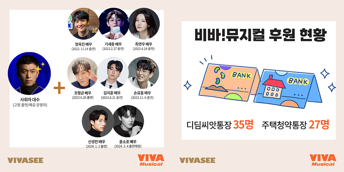 - 뮤지컬 배우X비바씨프렌즈 콜라보 제품 판매, 수익금 ‘디딤씨앗통장’으로 자립준비 청년 후원.