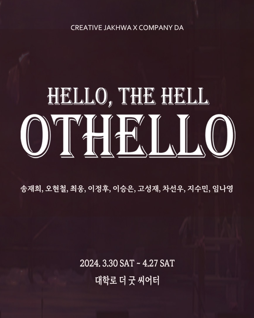 창작집단 작화의 연극 ‘헬로, 더 헬; 오델로’는 원작에만 집중하여 상연된 기존 작품들과는 달리, 윌리엄 셰익스피어의 4대 비극 중 ‘오델로’를 새롭게 해석한 창작극으로 비극 속 주인공들의 사후 세계를 추상적인 감정들을 신체의 언어로 참신하게 다룬 작품이다.