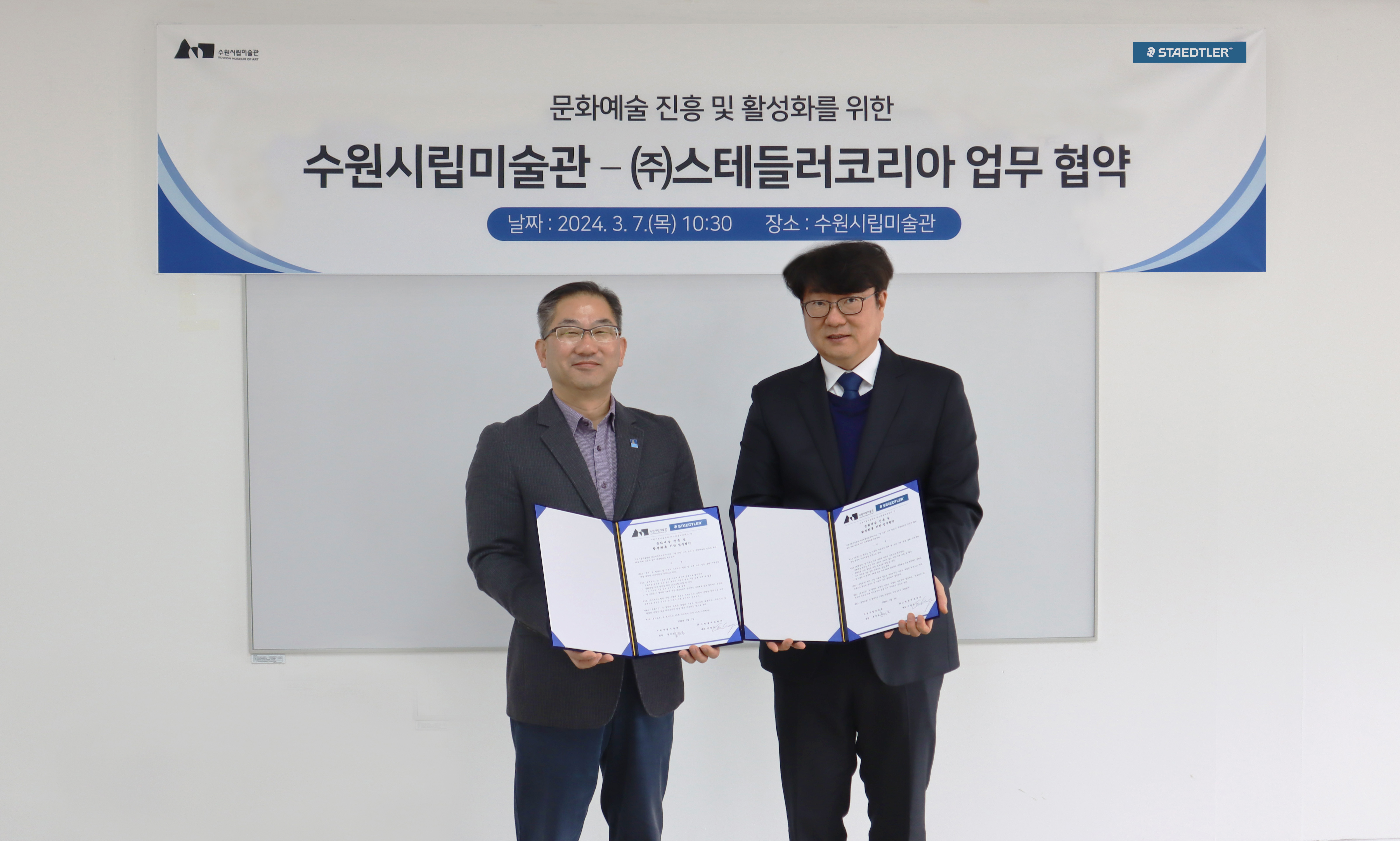 수원시립미술관에서 진행된 협약식에는 홍건표 수원시립미술관장과 스테들러코리아 이관주 대표가 참석해 업무협약을 바탕으로 문화예술 진흥을 위해 힘을 모으기로 했다.