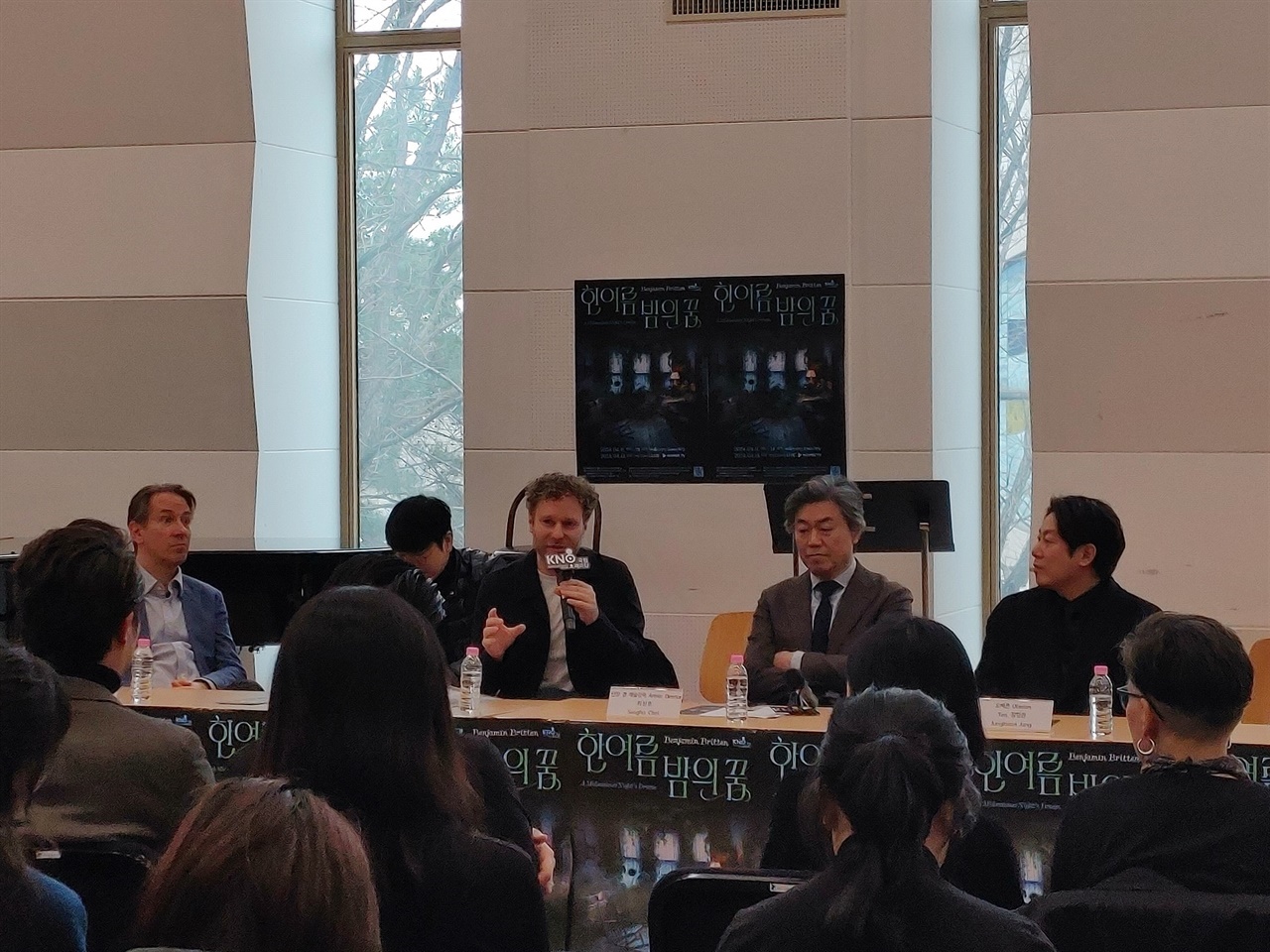 이어 “이번 작업에서는 셰익스피어의 수많은 텍스트 중에 적절한 텍스트를 연출과 찾는 것이 대단히 중요했다. 브리튼은 12음렬, 무조 등 당시 사조와 다르게, 영국 관객들에게 친숙할 수 있도록 조성을 사용했고 이는 헨리 퍼셀 등 과거의 전통적인 음악과도 이어지기 때문에, 오늘의 관객들도 현대음악에 대한 두려움을 가지지 않으셔도 된다”라고 진지하게 설명했다.