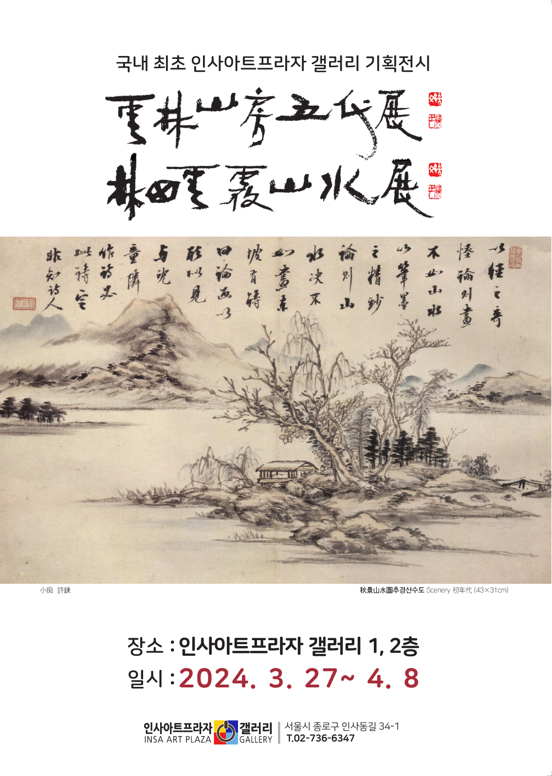 『林田 허문 초대전과 운림산방 5대전』은 인사아트프라자 갤러리 1층과 2층(서울시 종로구 인사동길 34-1)에서 2024년 3월 27일(수)부터 4월 8일(월)까지 무료로 감상할 수 있다.