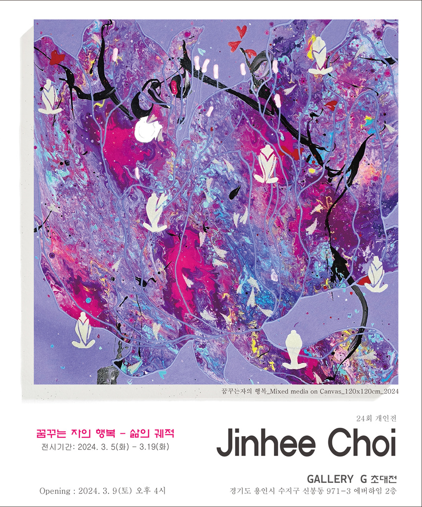 [플레이뉴스 문성식기자] 다양한 채색의 효과로 화려한 비구상 이미지를 만들고, 행복한 삶을 꿈꾸는 보편적 가치를 캔버스에 녹여 희망을 전하는 최진희 작가는 2024년 3월 5일(화) ~ 3월 19일(화)까지 경기도 용인 소재의 Gallery G에서 '꿈꾸는 자의 행복-삶의 궤적' 타이틀로 초대 개인전을 진행 중에 있다.
