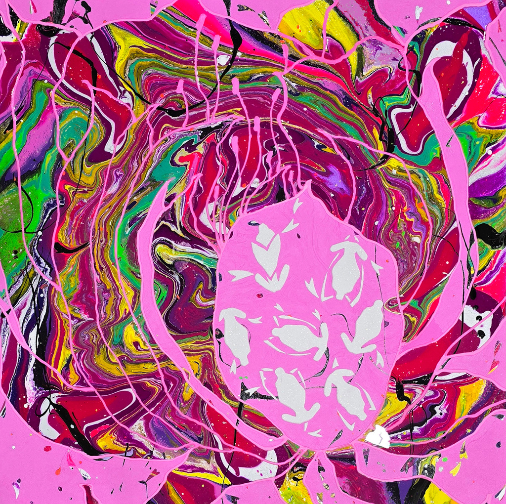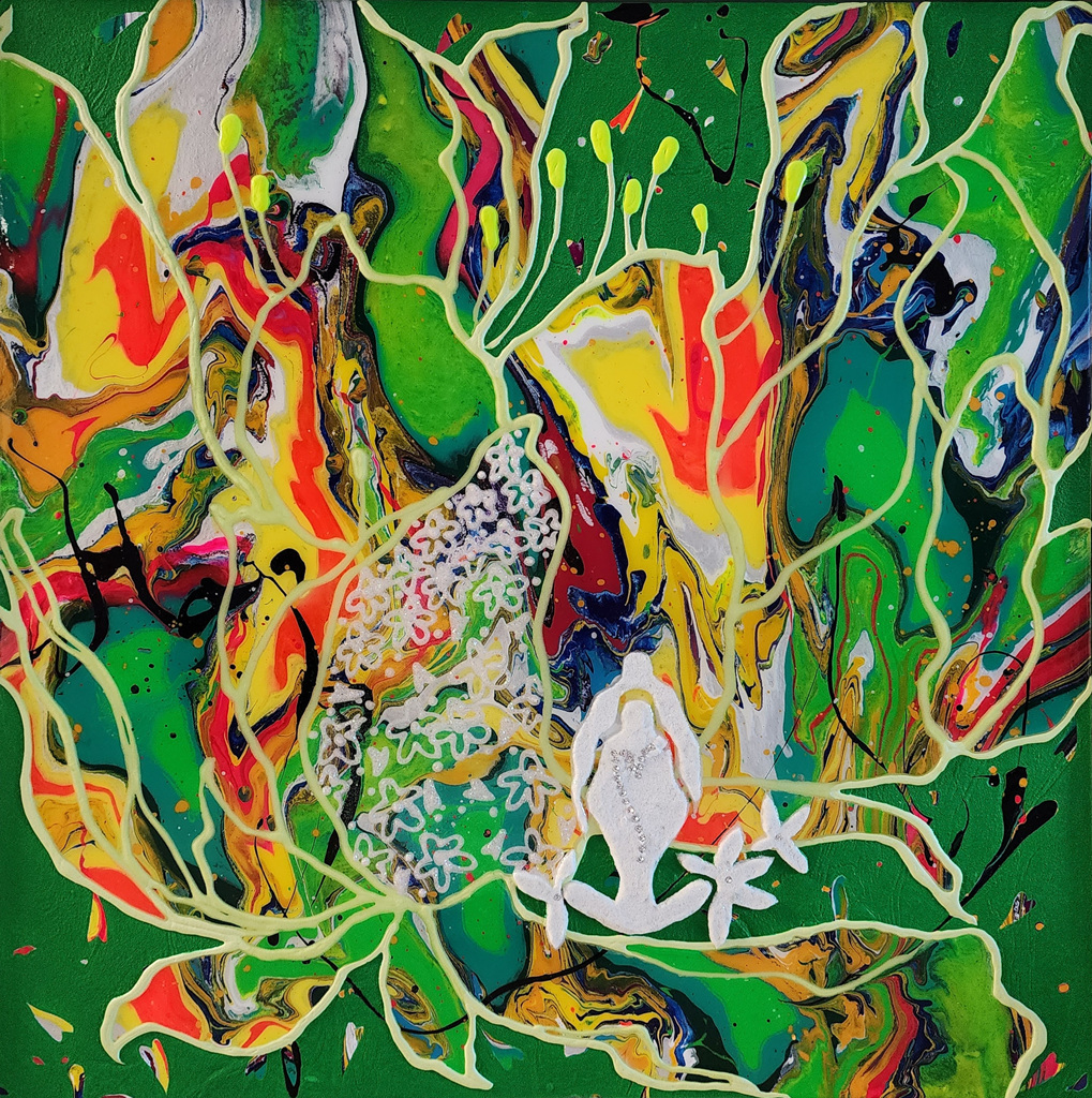 화면 전체에서 뿜어져 나오는 밝고 화려한 색상은 각자가 원하는 인생이 펼쳐지기를 바라는 마음의 표현으로 선의 자유로움과 뚜렷한 경계선 없이 형성된 색들의 조합이 이채롭다.