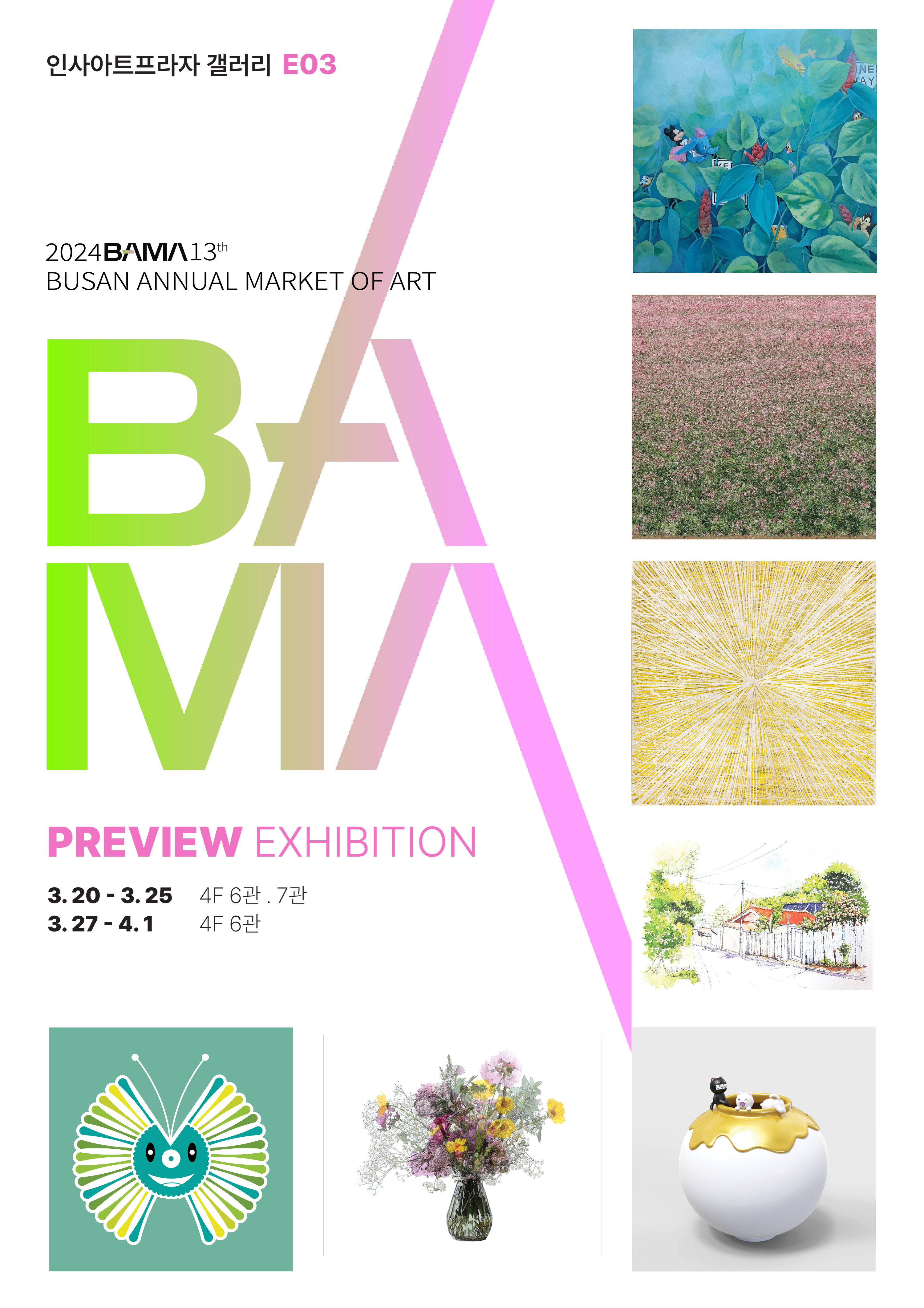 '2024BAMA 참여작가전'은 인사아트프라자 갤러리 4층(서울시 종로구 인사동길 34-1)에서 3월 20일(수)부터 4월 1(월)까지 무료로 감상할 수 있다.