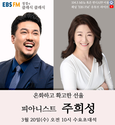3월 20일 수요일 '수요초대석'에서는 1995년 영국 더들리 국제 피아노 콩쿠르에서 우승 후 런던 로열페스티벌홀에서 성공적인 데뷔 독주회를 통해 극찬을 받았던 피아니스트 주희성이 출연해 라이브 연주와 함께 열정 가득한 음악과 인생 이야기를 들려준다.