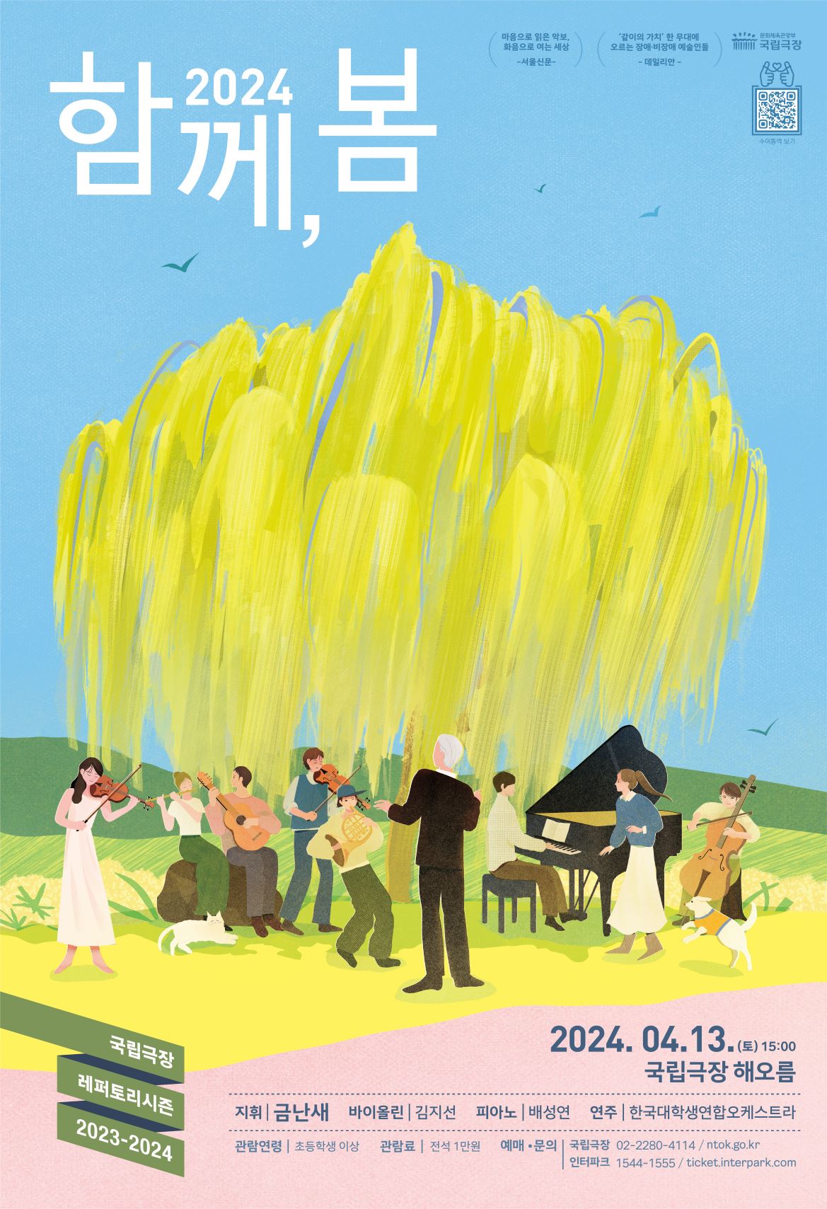 '2024 함께, 봄'은 국립극장 ‘동행, 장벽 없는 극장 만들기’의 일환으로 기획된 공연으로, 2022년 첫 선을 보였다. 장애인과 비장애인이 ‘함께’ 음악으로 소통하고, 따뜻한 ‘봄’을 느끼며, 장벽 없이 ‘함께 보자’라는 뜻을 담고 있다.