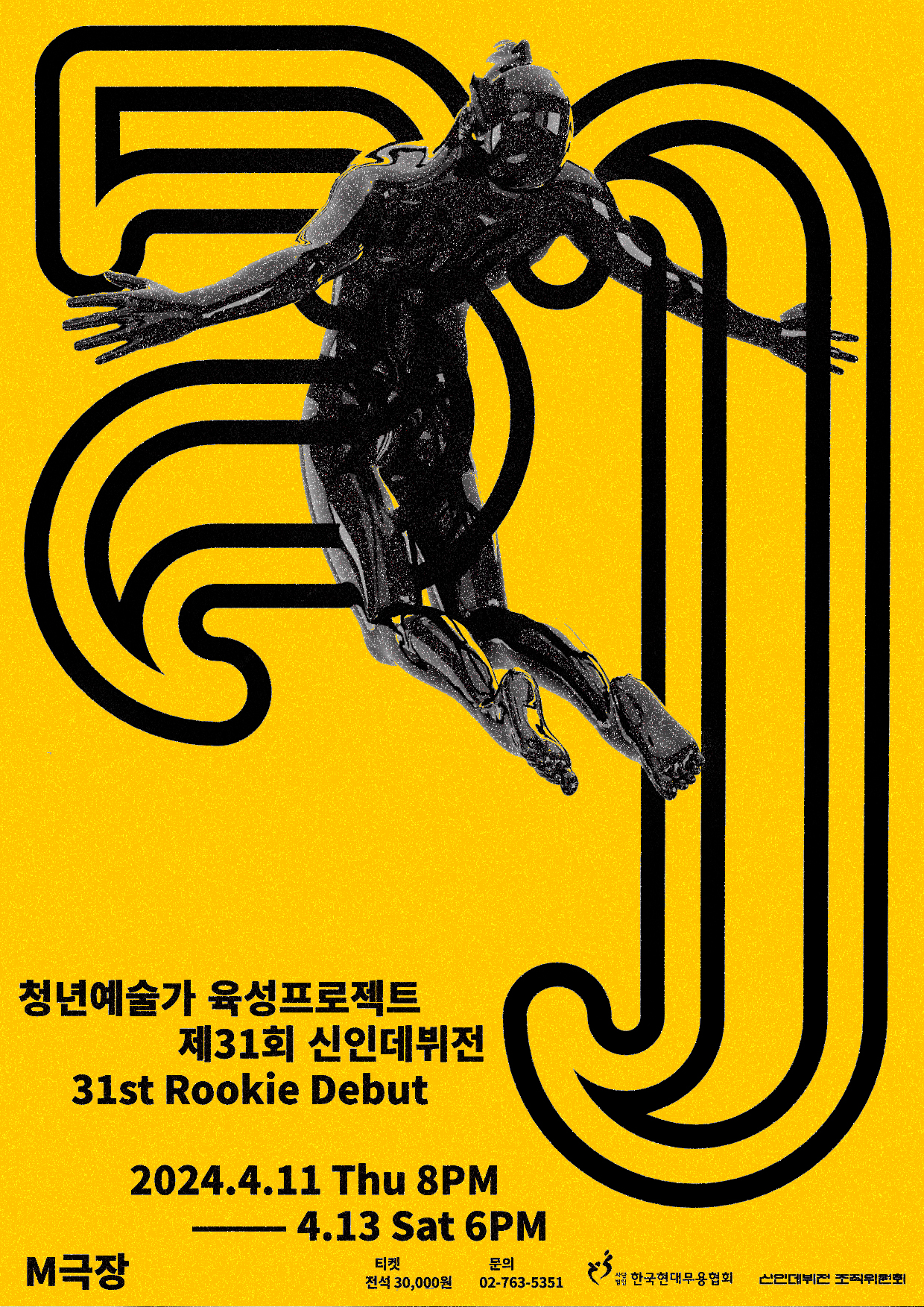 [플레이뉴스 문성식기자] (사)한국현대무용협회(이사장 김형남, 세종대학교 교수)가 주최하는 ‘청년예술가 육성프로젝트 제31회 신인데뷔전’이 오는 4월 11일부터 4월 13일까지 M극장에서 열린다.