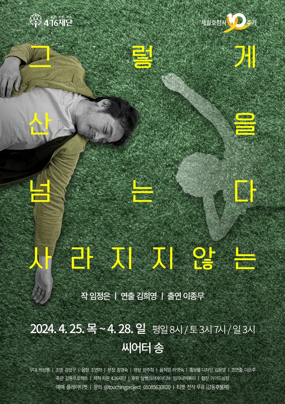 열 번째 돌아오는 4월, 세월 속에 잊어가는 그날을 관객들과 다시 함께 기억해보길 원한다. 이번 작품은 4.16재단의 세월호 10주기 기념 예술작품 지원 공모에 선정되어 오는 4월 25일부터 4월 28일까지 서초동에 있는 씨어터 송에서 공연될 예정이다.