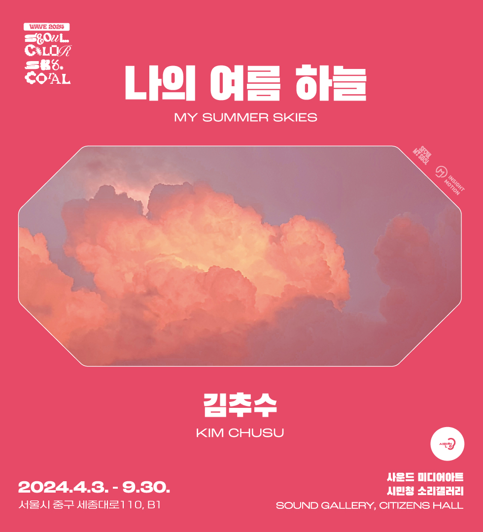 서울시청 시민청 담벼락 미디어와 소리갤러리에서 진행하는 ‘웨이브’는 공모로 진행되는 시민 기획 전시다. 해당 전시에서는 2024 올해의 서울색 ‘스카이코랄’을 주제로 시민 공모사업을 통해 선정한 작가 두 명의 작품을 만나볼 수 있다. 전시는 4월 3일부터 9월 30일까지 진행하며 누구나 무료로 관람할 수 있다.