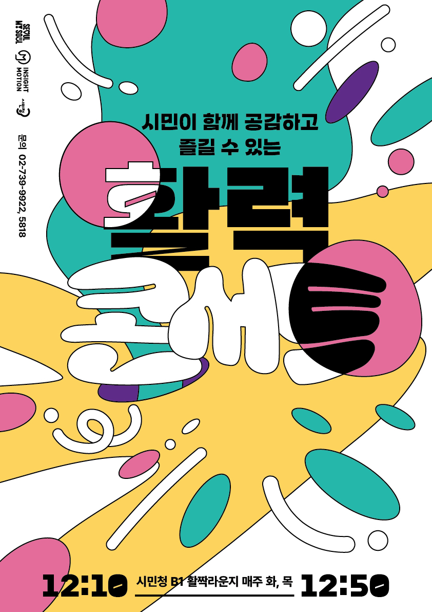 서울시청 시민청 활짝라운지에서 진행하는 ‘활력콘서트’는 시민이 참여하고 시민이 즐기는 무료 공연 프로그램이다. 매주 화·목 오후 12시 10분부터 40분간 점심시간에 진행하는 ‘활력콘서트’에서 ‘싱어게인3’ 출연자 이유카, 샌드아티스트 채승웅 등 다양한 시민청예술가의 공연을 누구나 관람할 수 있다.