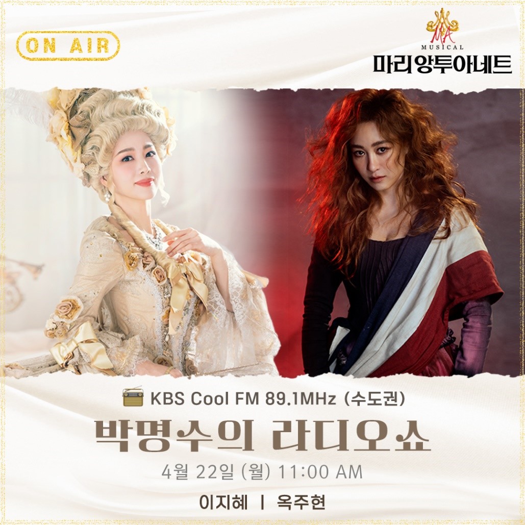 ■ 뮤지컬 '마리 앙투아네트' 옥주현, 이지혜, 22일 KBS Cool FM '박명수의 라디오쇼' 출연! 작품 관련 진솔한 토크 선사!