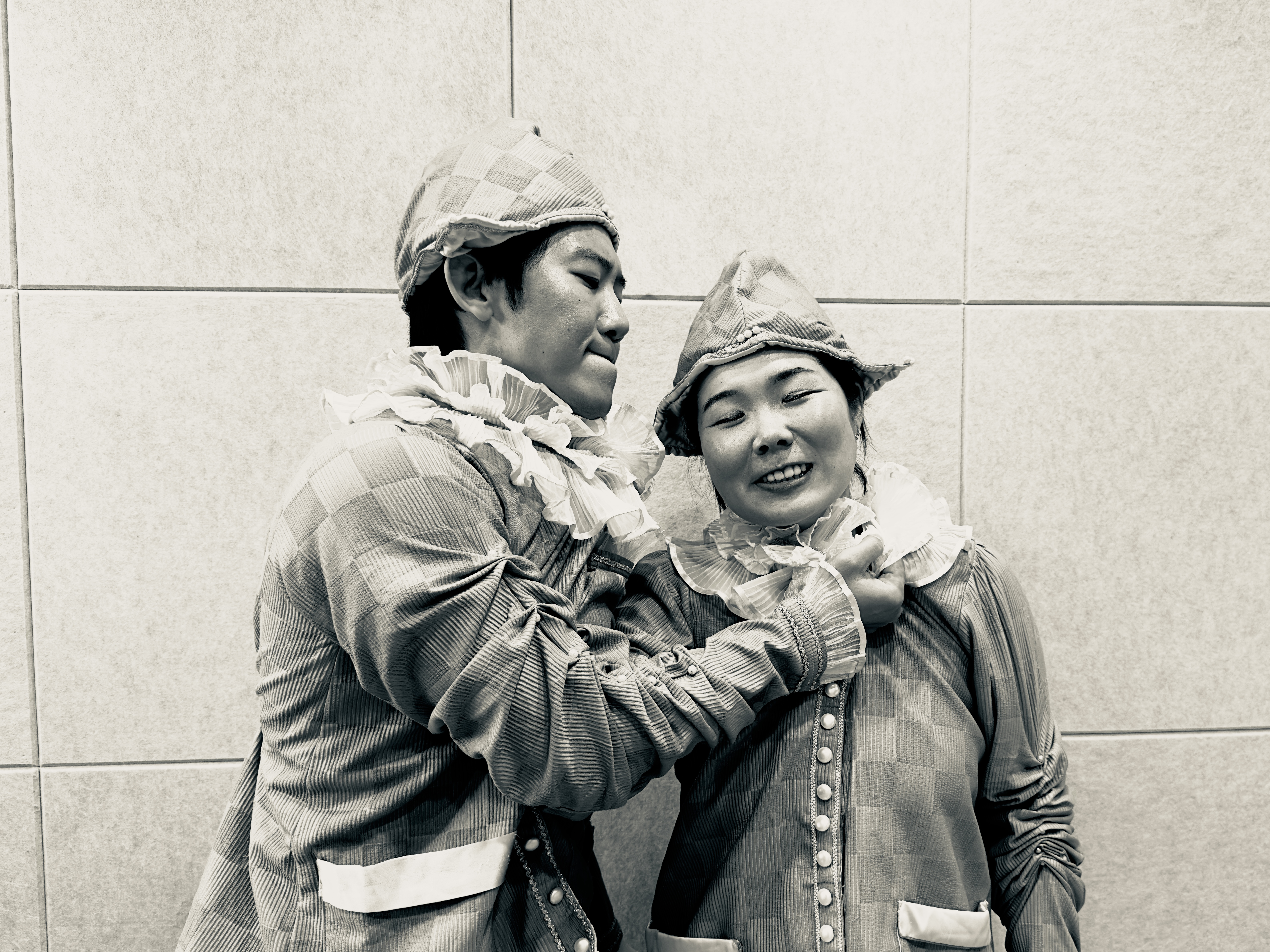 두 광대는 둘이서 역할을 바꿔가며 이야기를 펼친다.